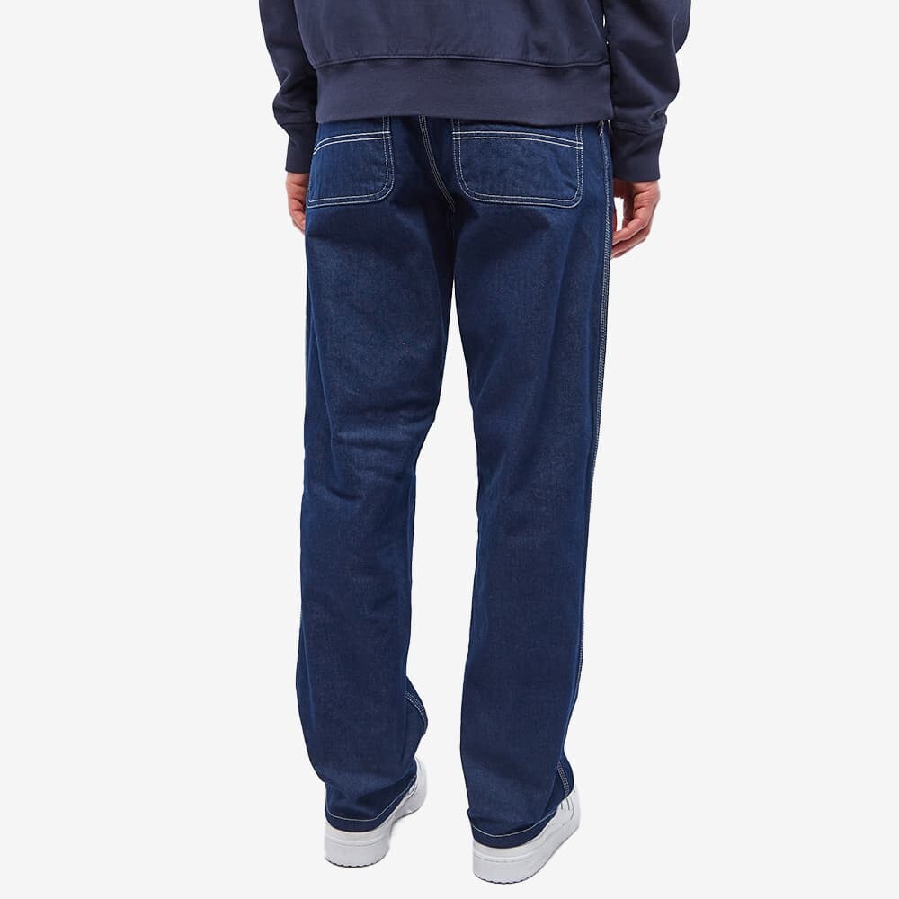 Известная своими культовыми джинсами, Carhartt WIP продолжает выпускать эти простые брюки. Они скроены из хлопка и имеют мешковатые прямые штанины, а сзади украшены важной тканой нашивкой с логотипом.