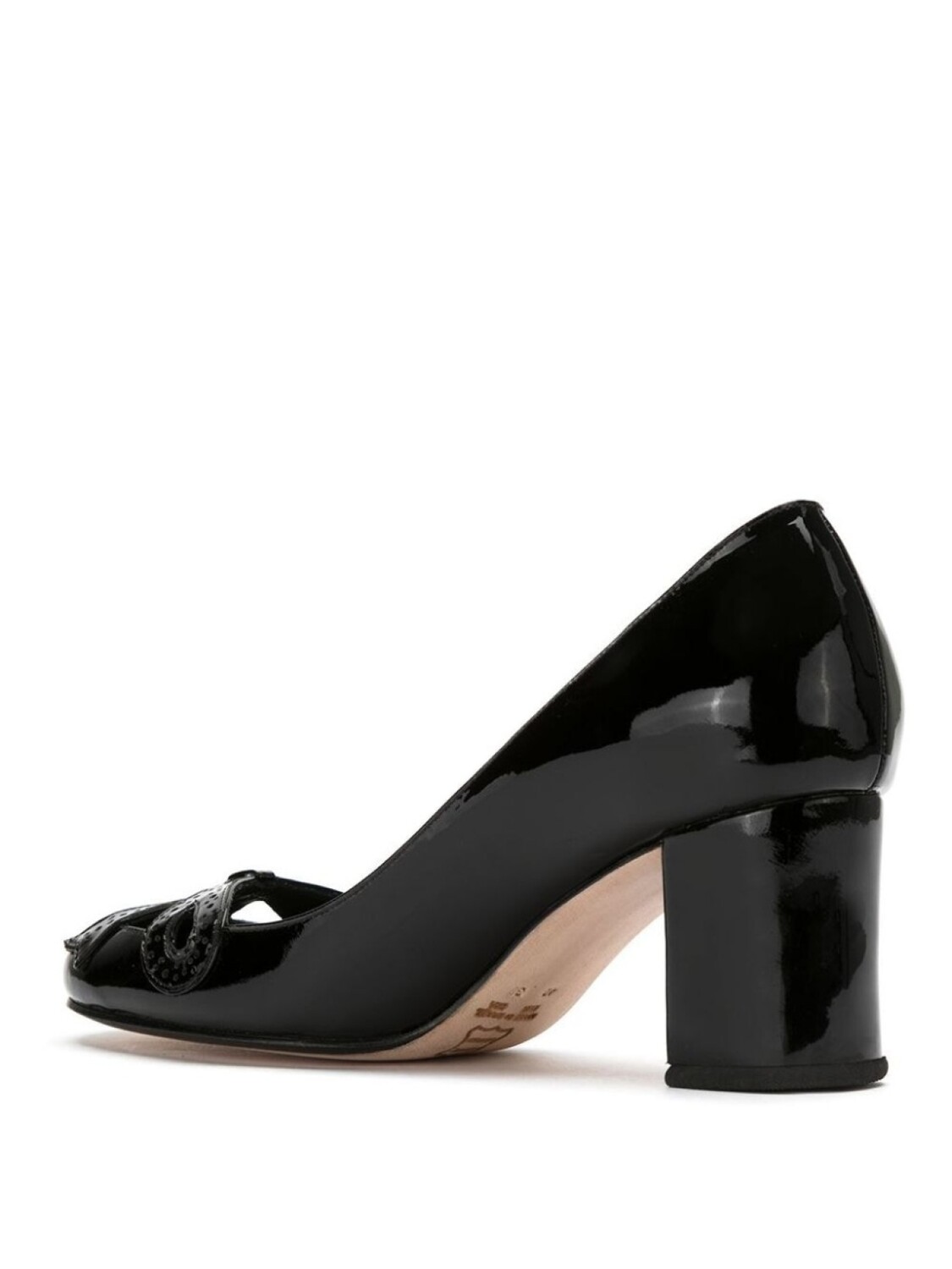 Patent leather pumps от Sarah Chofakian. Закругленный носок и наборный каблук средней высоты. Цвет: черный.