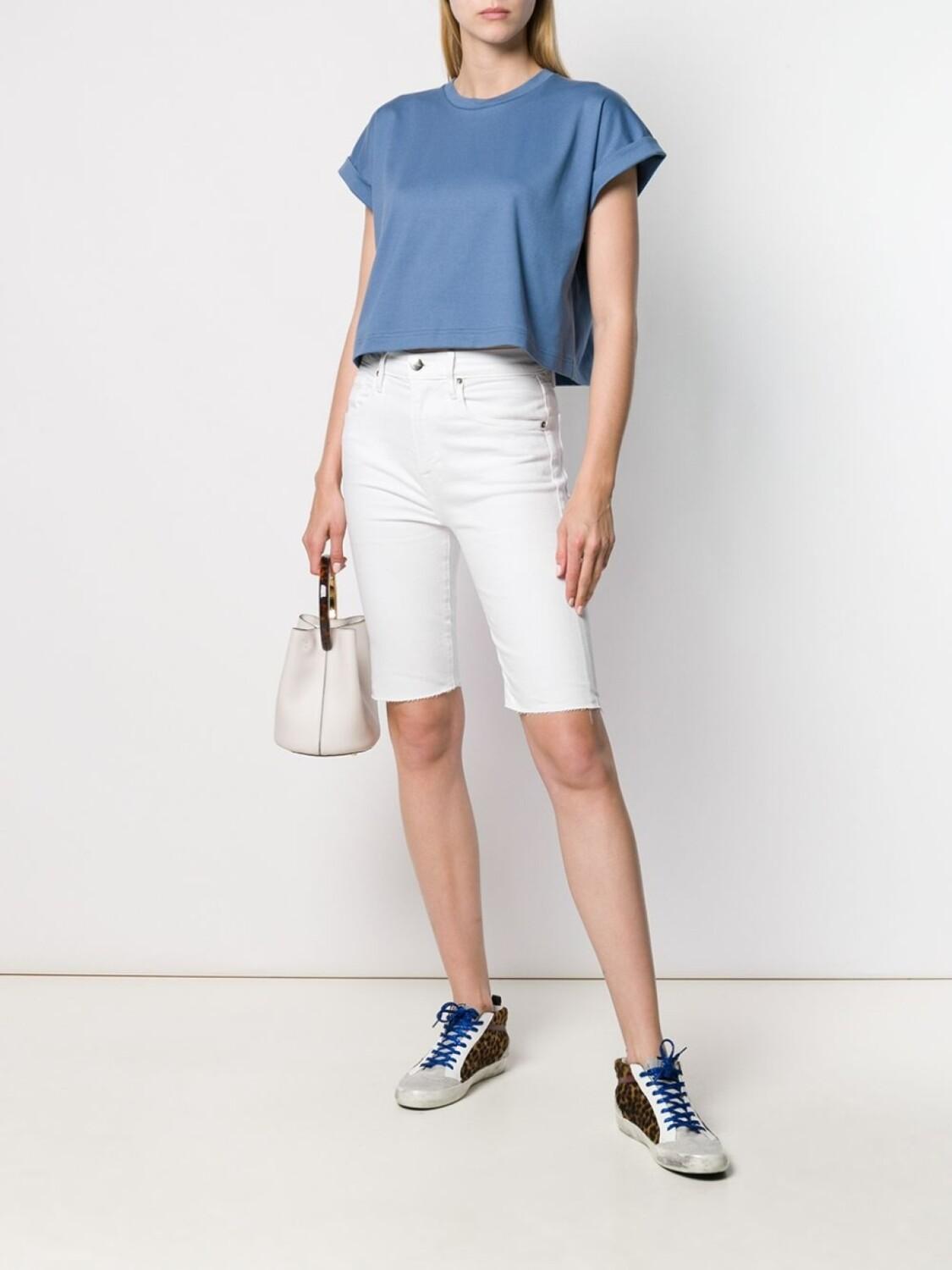 Шорты-бермуды Le Vintage от Frame. Классическая пятикарманная модель, стиль "скинни" и необработанные края. Цвет: белый.
