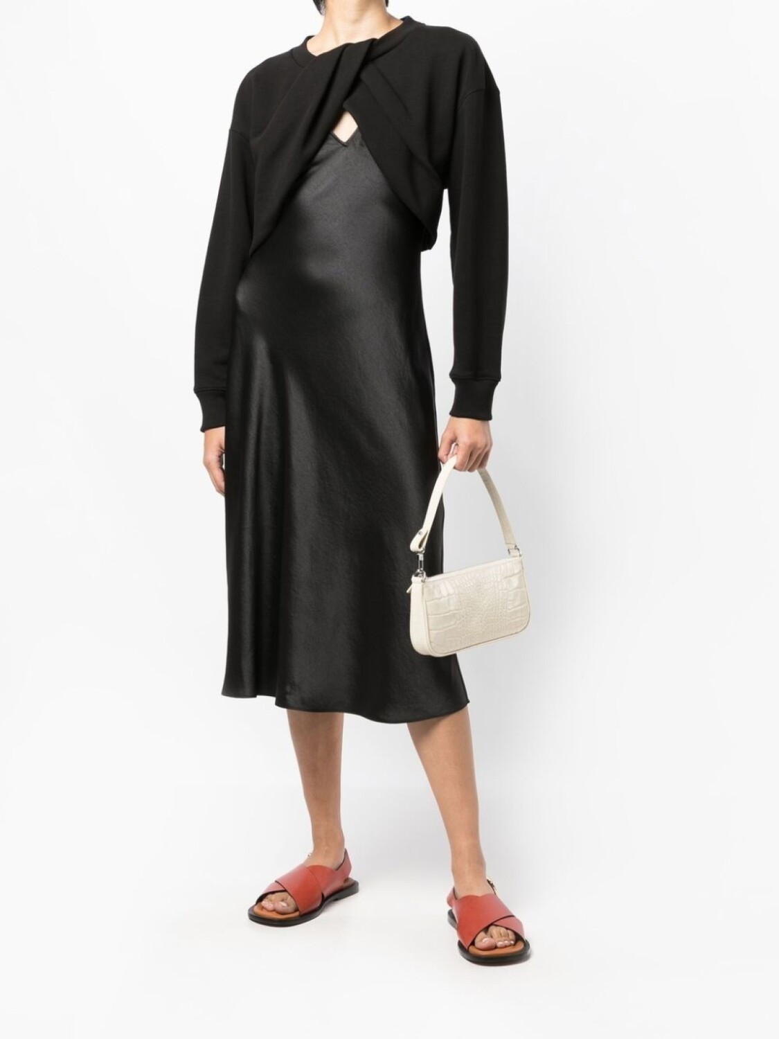 Детали с оборками, вырезные детали, длинные рукава и расклешенный крой.