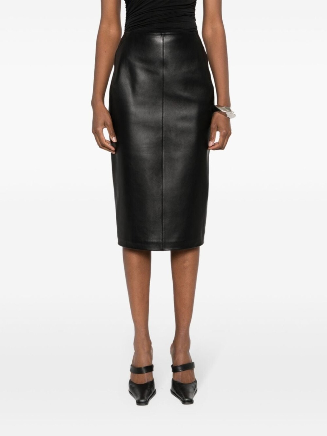 Кожаная юбка-карандаш длины миди Alaïa, черный