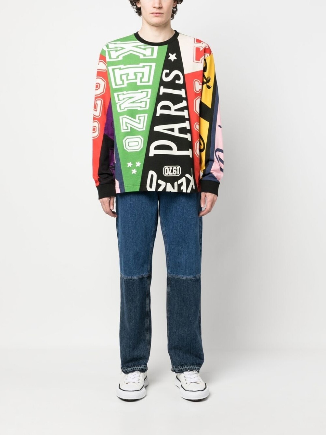 Черный/разноцветный, хлопок, техника пэчворк, принт с логотипом, круглый вырез, длинные рукава, эластичные манжеты и прямой подол.