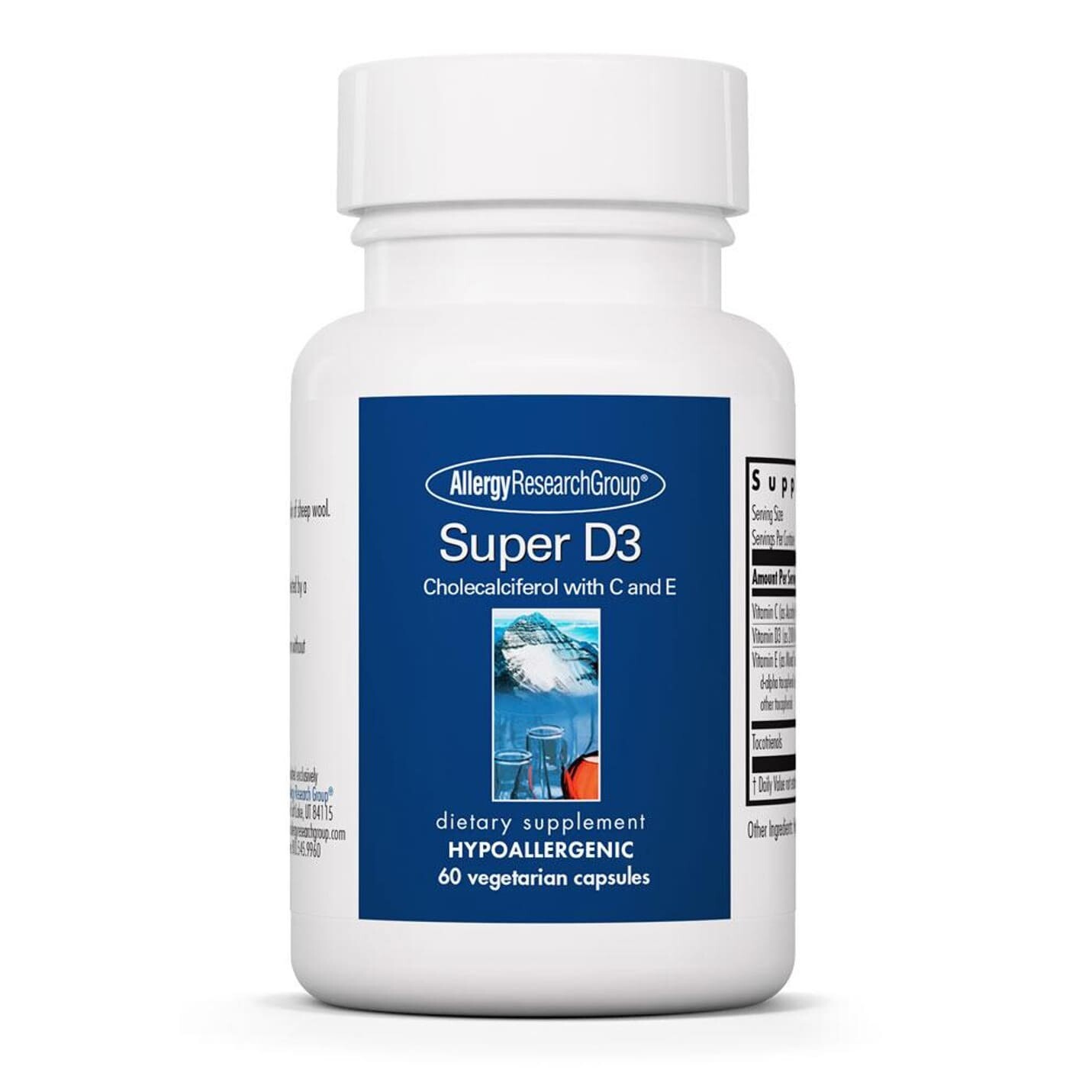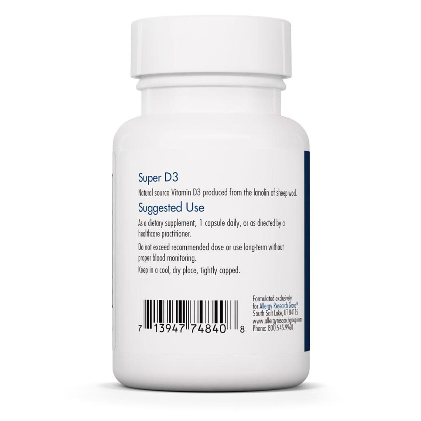 Витамин D3 обычно производится на животной основе, а витамин D3 Super от Allergy Research Group, является витамином природного происхождения, изготовленным из масла, экстрагированного из шерсти (ланолина). Он содержит экстрагированный соей витамин Е в качестве антиоксиданта для сохранения свежести. Используются растительные капсулы.