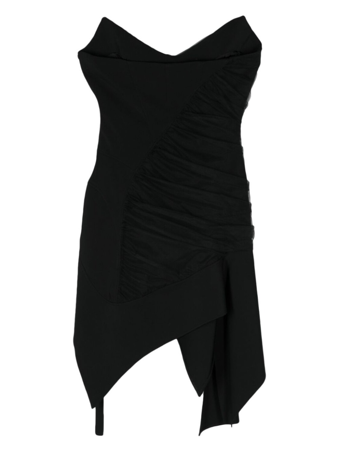 Короткое платье асимметричного кроя со сборками Mugler, черный