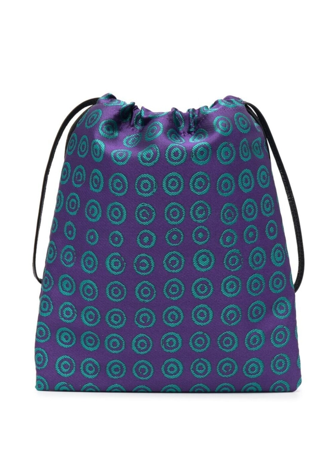 Геометричный принт, нашивка с логотипом спереди и завязка на шнурке. Цвет: фиолетовый.