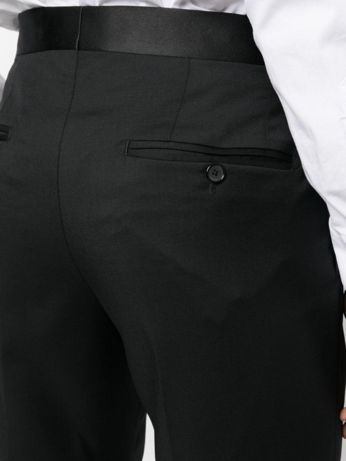 Черный, необработанная шерсть, металлический логотип, заостренные лацканы, застежка на пуговицах спереди, прорезной карман на груди, два прорезных кармана спереди, строгий крой, контрастный пояс, потайная застежка спереди, два вшитых кармана по бокам и два прорезных кармана сзади.