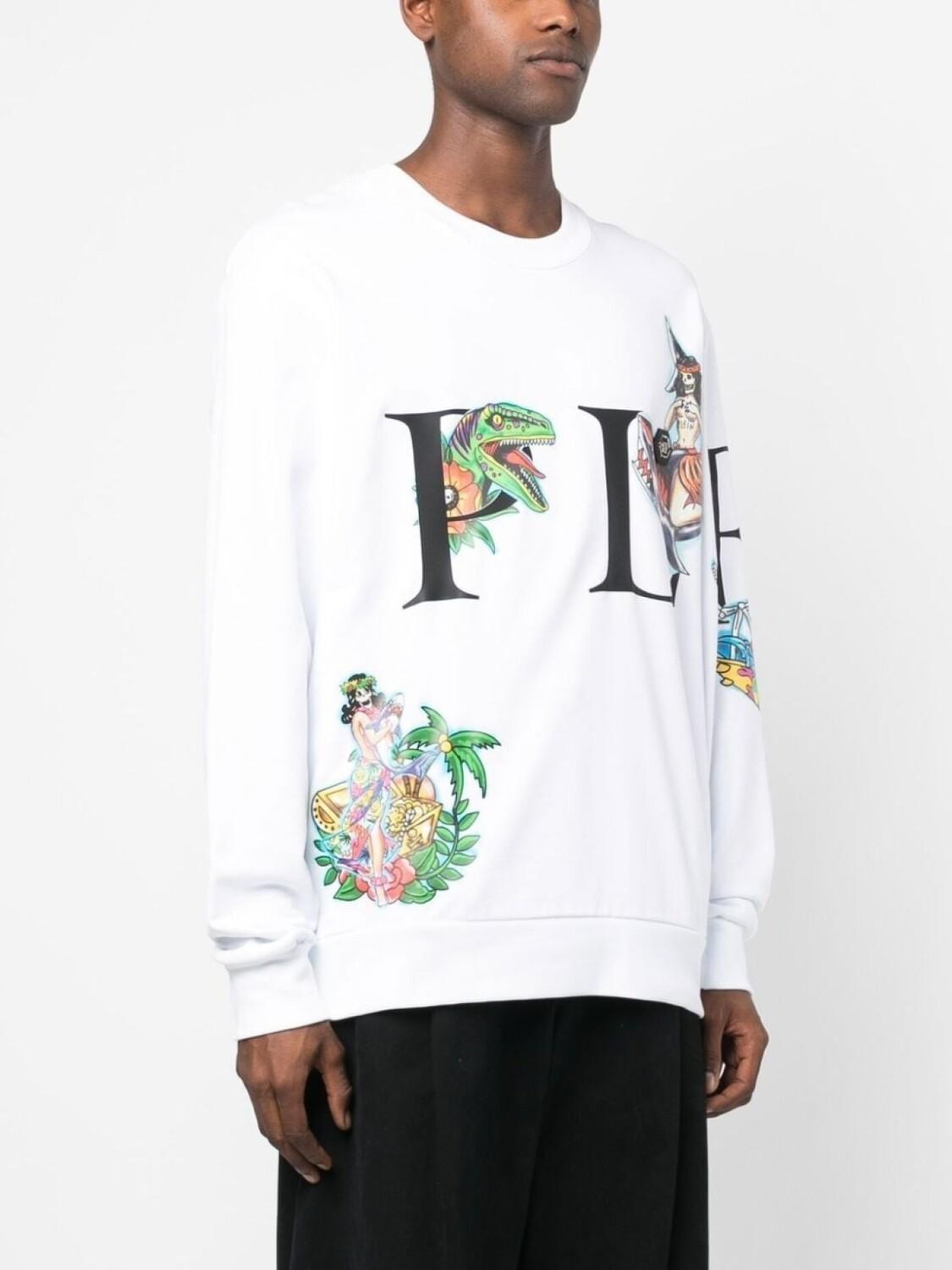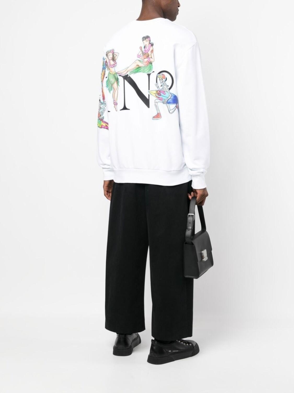 Белый/разноцветный, хлопок, сплошной принт с логотипом, сплошной цветочный принт, круглый вырез, длинные рукава и подол в рубчик.