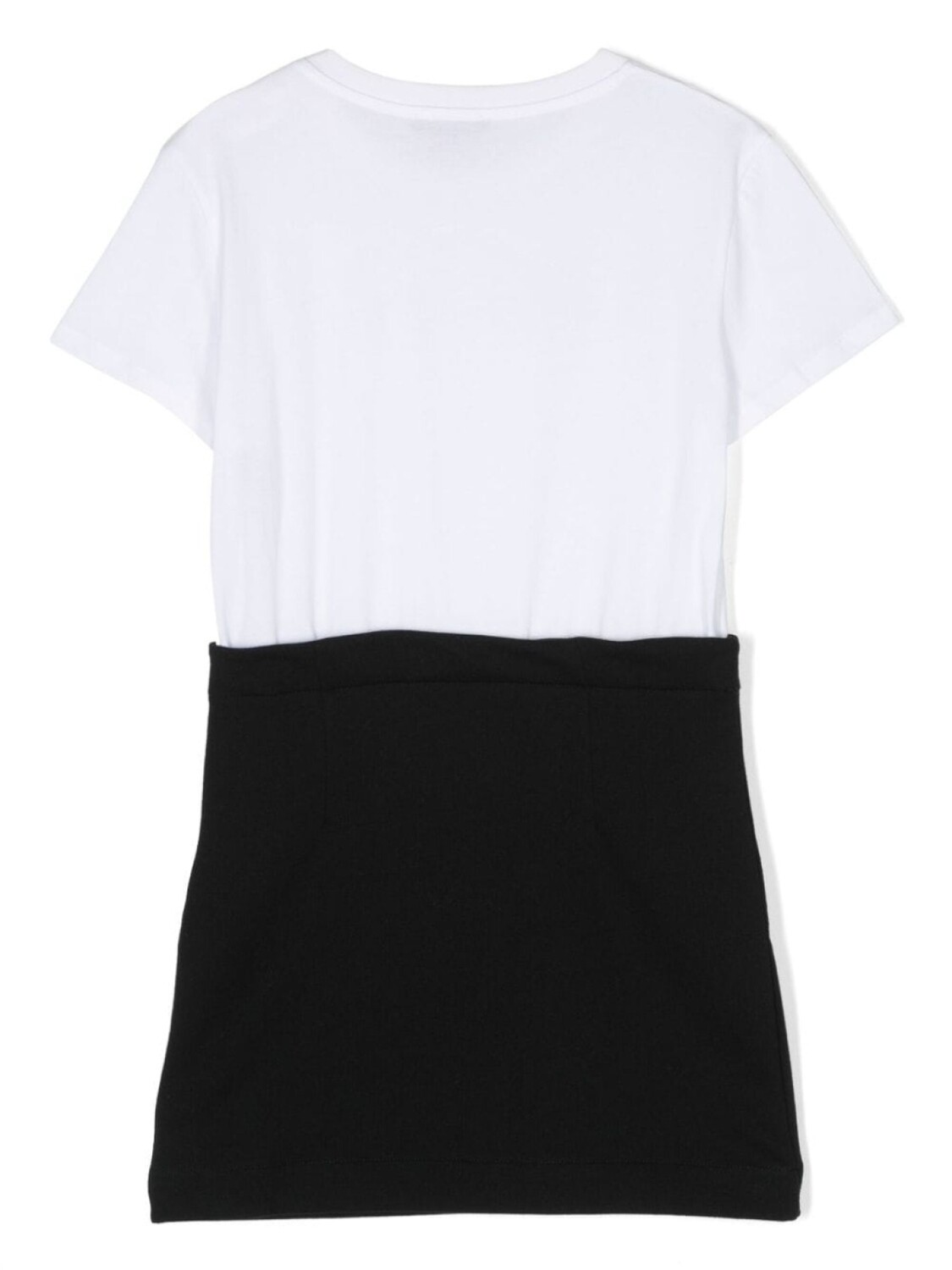 Черный/белый, хлопок, контрастные вставки, логотип, золотистая фурнитура с выгравированным логотипом, круглый вырез, короткие рукава, пуговичные застежки на плечах и прямой подол.