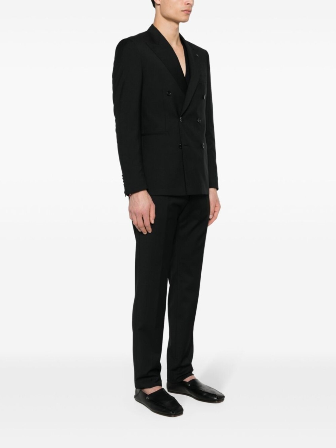 Подробнее о товаре: • прорезной карман на груди • двубортная застежка на пуговицы • фактурная отделка • две боковые шлицы сзади • длинные рукава • потайная застежка на пуговицы, крючок и молнию спереди • стрелки • вирджинская шерсть • прямой подол • два прорезных кармана по бокам • зауженный крой • цельная подкладка • подплечники • петли для ремня • черный • два прорезных кармана сзади • заостренные лацканы • внутренний прорезной карман