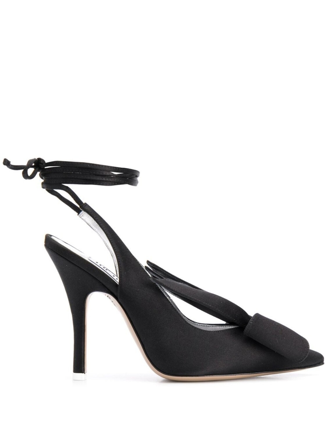 Атласные туфли с завязками от Attico. Заостренный носок, высокая шпилька, бант и кожаная подошва. Цвет: черный.