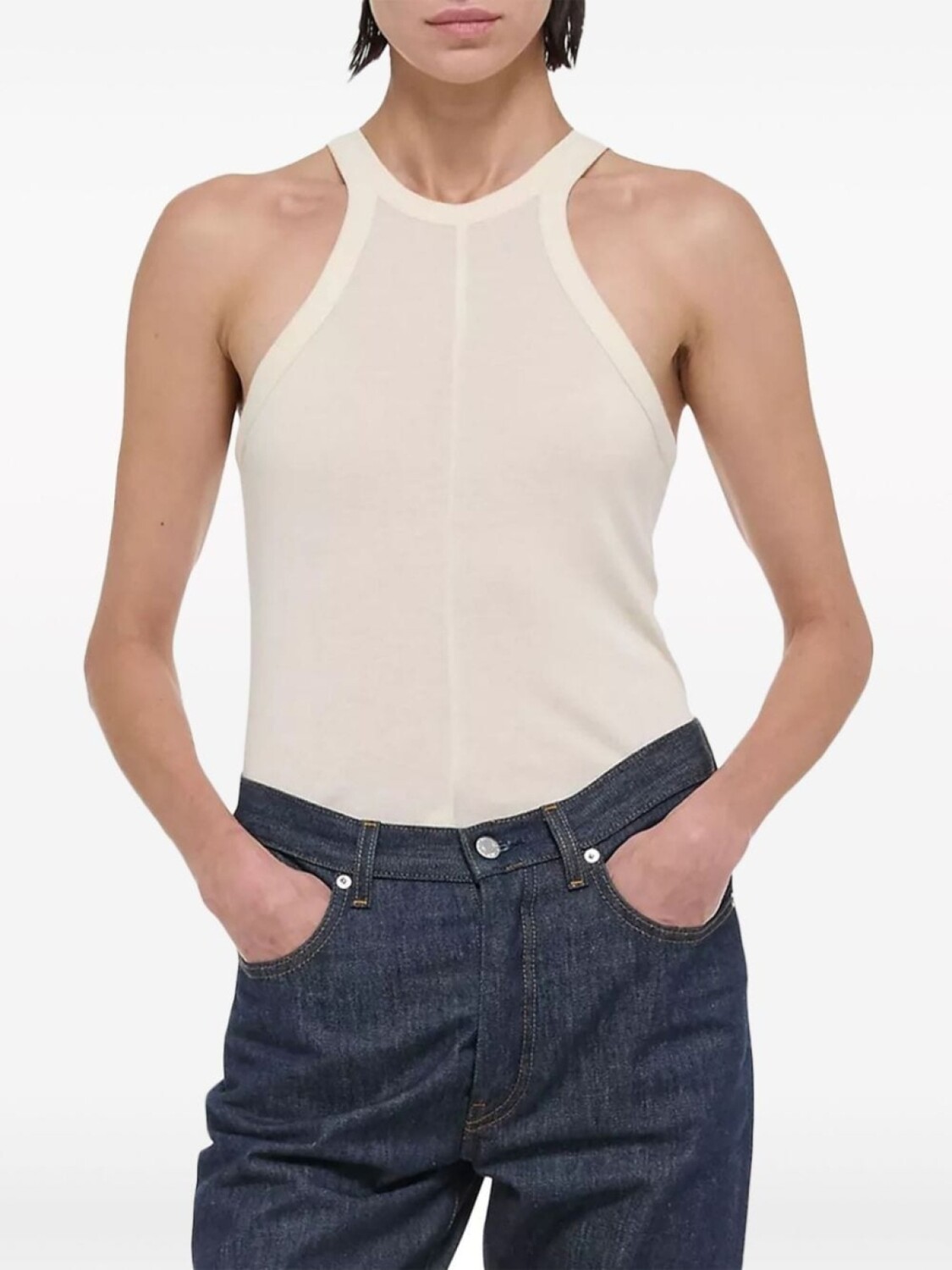 Оттенок слоновой кости, смесовый модал, ткань в мелкий рубчик, круглый вырез, без рукавов, прямой подол, Этот товар как минимум на 50% состоит из материалов, которые признаны более безопасными для окружающей среды, и/или произведены с использованием методов, которые помогают сократить потребление воды и химических веществ., Узнать больше о том, какие товары получают отметку «Ответственный выбор», можно здесь.