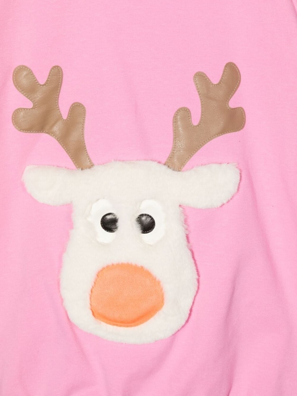 Светло-розовый, эластичный хлопок, аппликация, круглый вырез, длинные рукава реглан и эластичный подол.