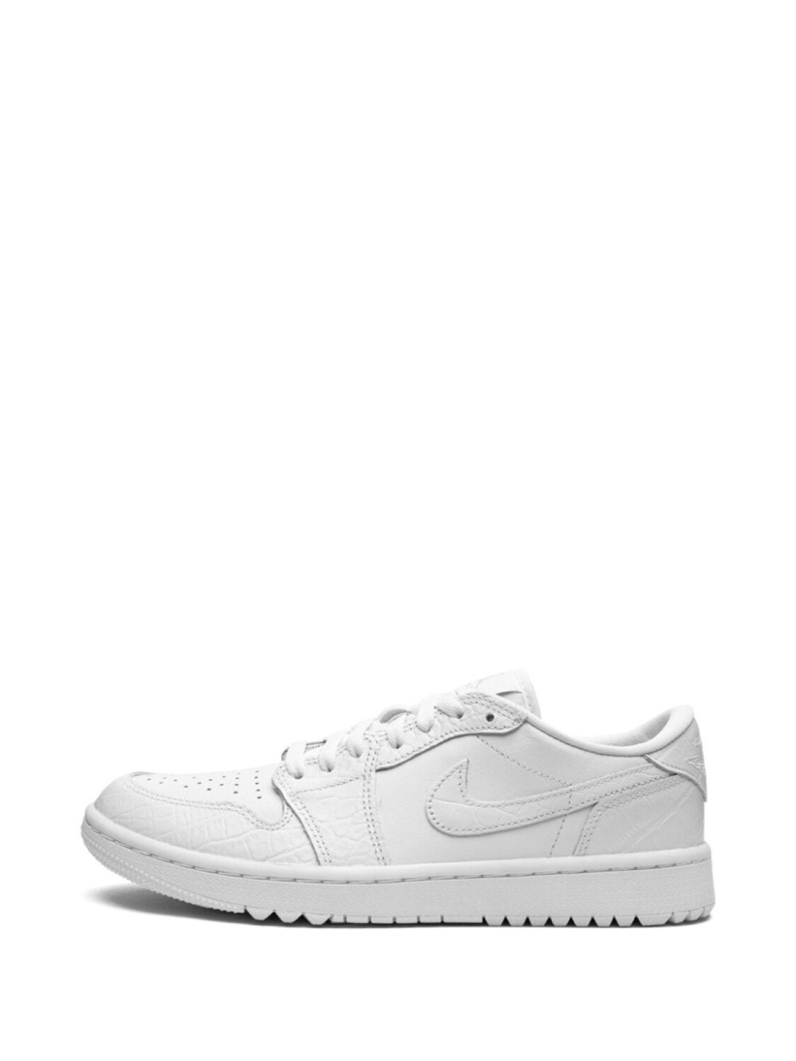 Белый, телячья кожа, вставки, тиснение под кожу крокодила, нашивка с логотипом Jumpman на язычке, логотип Nike Swoosh, логотип Air Jordan Wings, шнуровка спереди, перфорированный носок, закругленный носок и плоская резиновая подошва. Эта модель представлена на маркетплейсе, где можно найти самые редкие модели кроссовок, о которых мечтают коллекционеры и любители streetwear по всему миру.