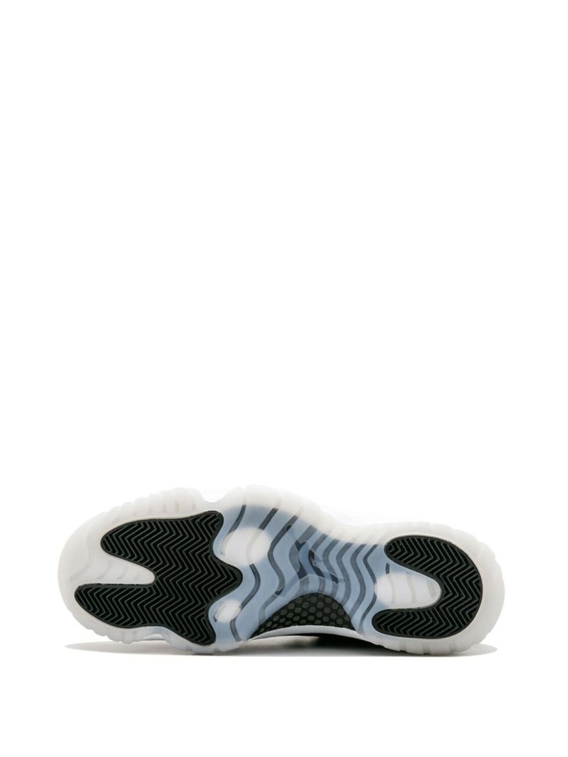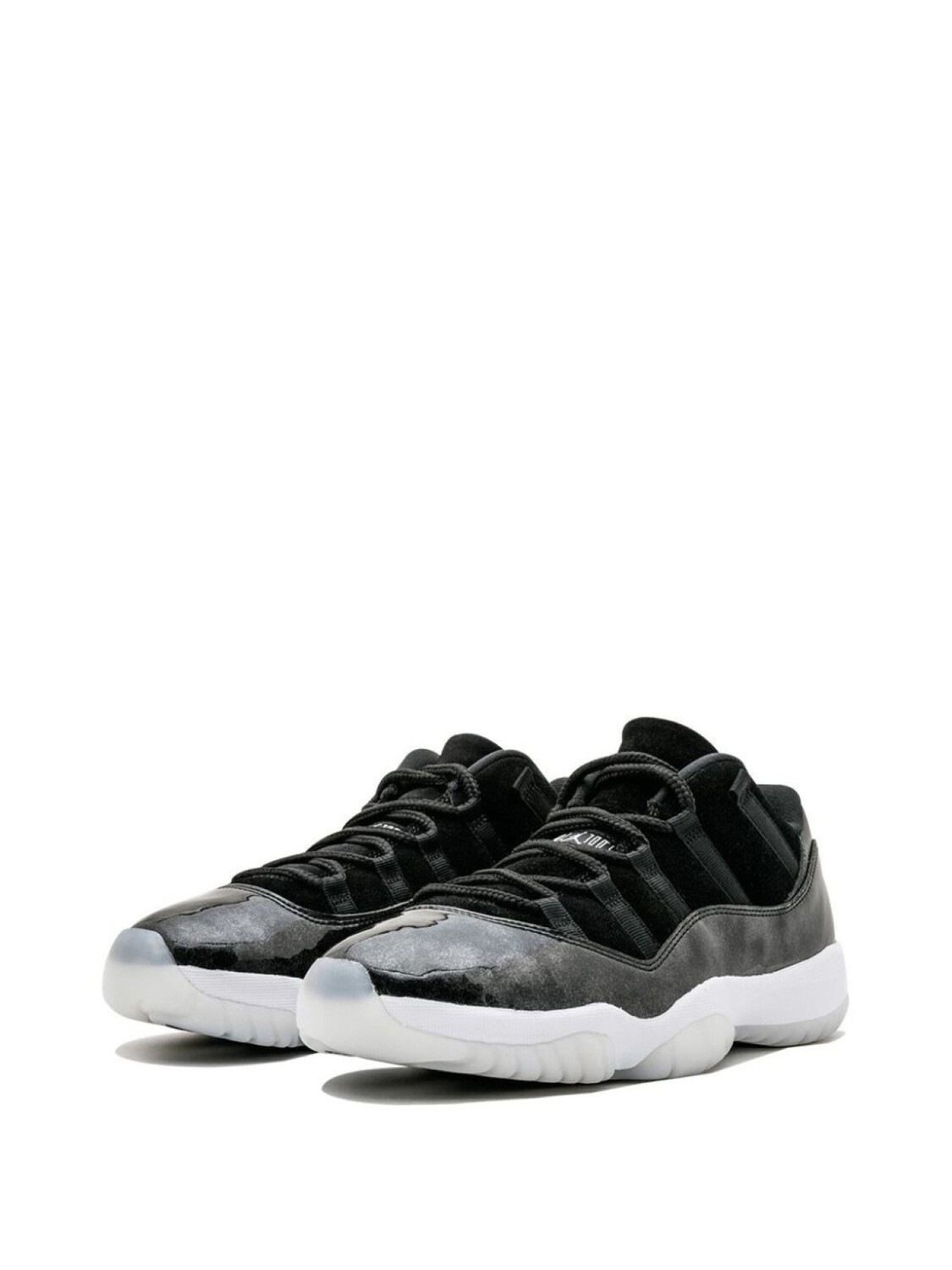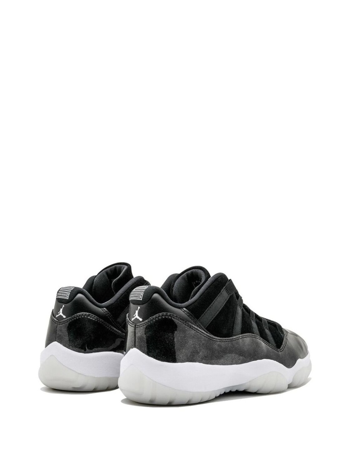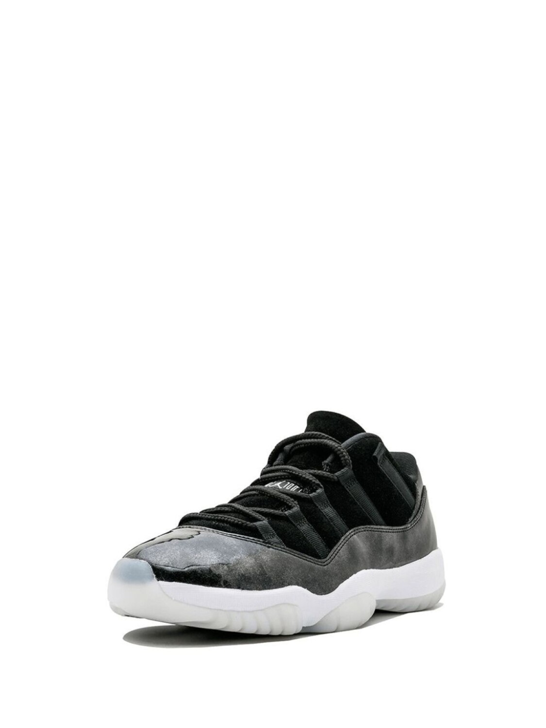 Черно-белые кожаные кроссовки 'Air Jordan 11 Retro' от jordan. Закругленный носок, плоская подошва, застежка на шнуровке, заплатка с логотипом на язычке.