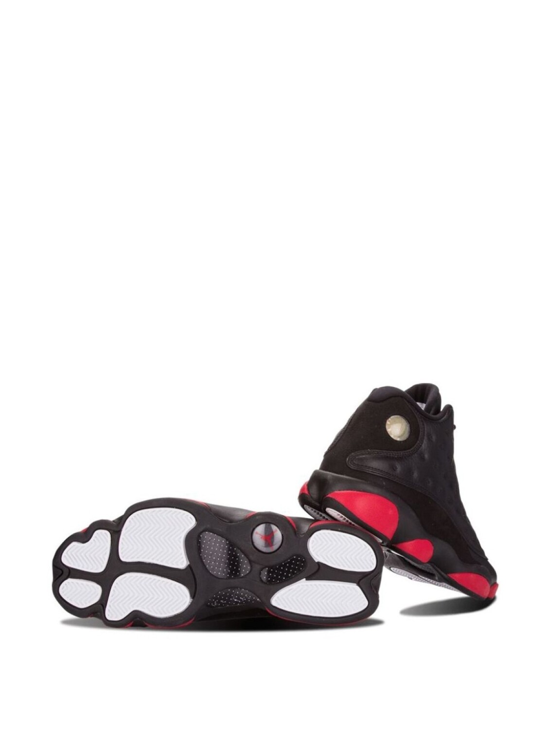 Кроссовки 'Air Jordan 13 Retro' от jordan. Миндалевидный носок, шнуровка спереди, язычок с логотипом, фирменная стелька, уплотненная щиколотка и резиновая подошва. Цвет: черный, красный., Это унисекс-модель. Обратите внимание, что для нее используется мужская размерная сетка