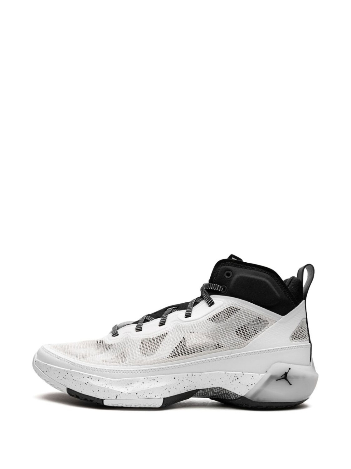 Черный/белый, сетчатые вставки, логотип Jumpman, закругленный носок, шнуровка спереди, петля для подтягивания сзади, стелька с логотипом и резиновая подошва. Эта модель представлена на маркетплейсе, где можно найти самые редкие модели кроссовок, о которых мечтают коллекционеры и любители streetwear по всему миру.