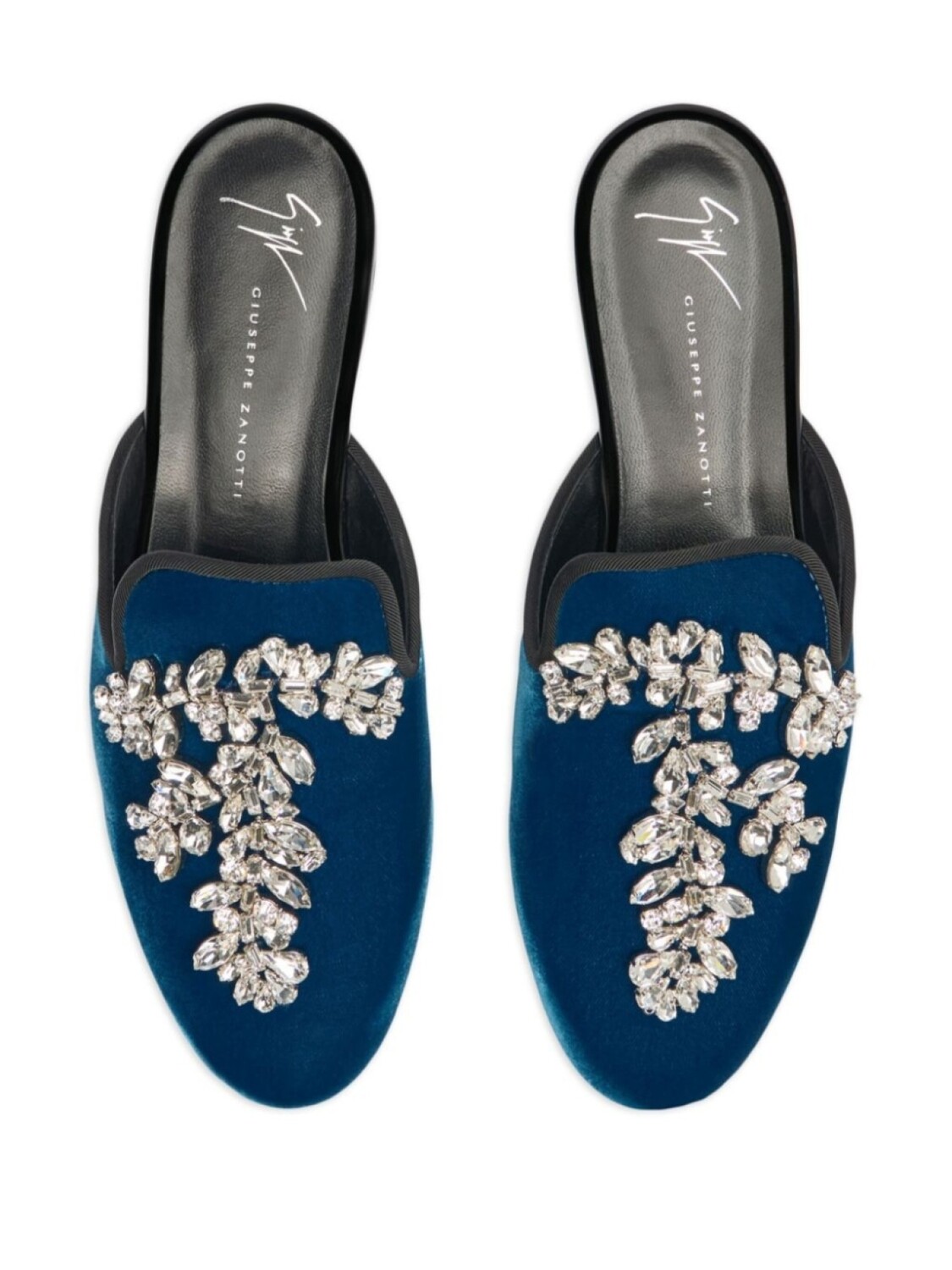 Бархатные мюли Elsa с кристаллами Giuseppe Zanotti, синий