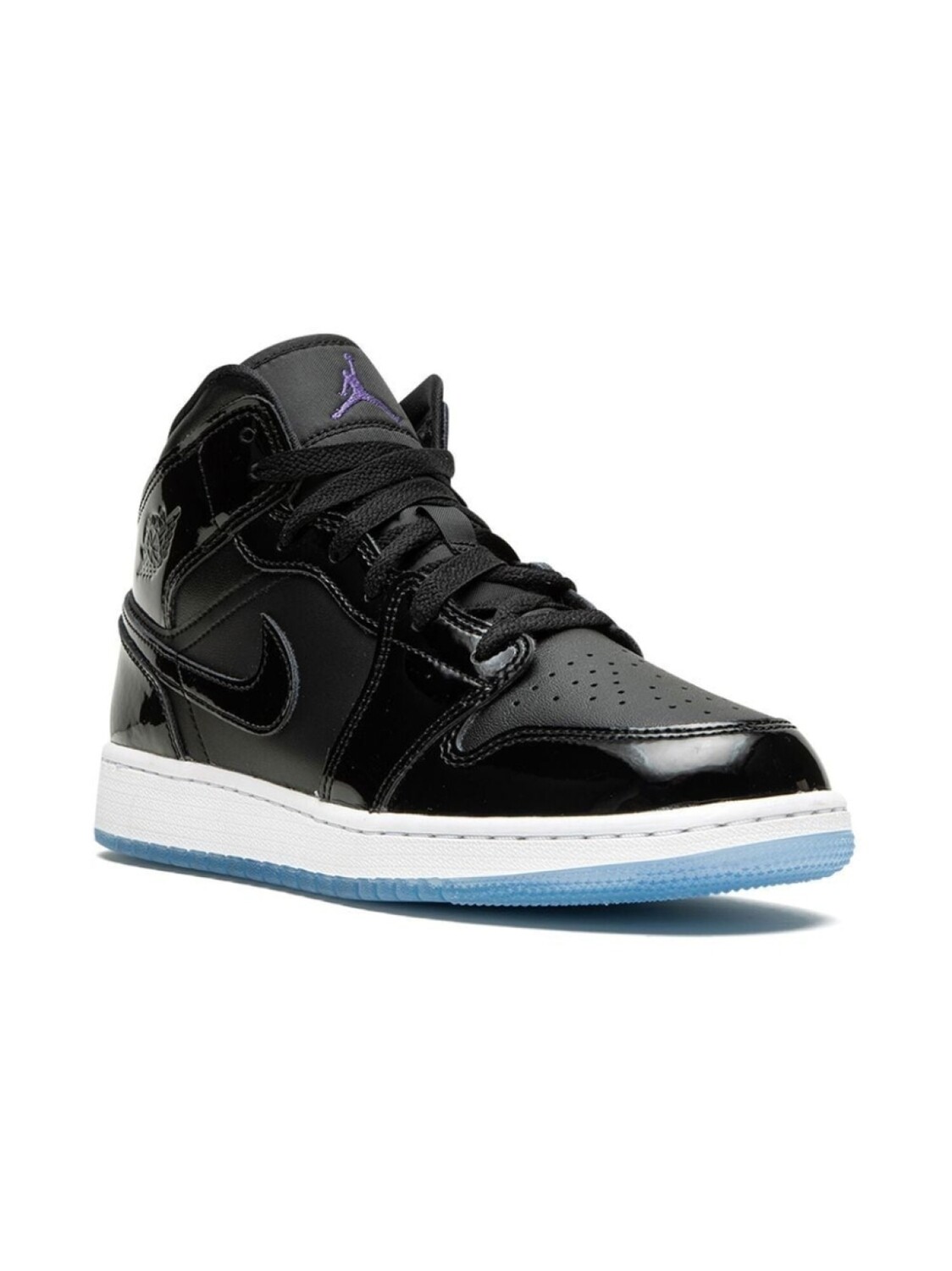 Черный, кожа, лакированная отделка, логотип Nike Swoosh, логотип Air Jordan Wings, закругленный носок, шнуровка спереди, нашивка с логотипом на язычке, высота по щиколотку, стелька с логотипом и резиновая подошва. Эта модель представлена на маркетплейсе, где можно найти самые редкие модели кроссовок, о которых мечтают коллекционеры и любители streetwear по всему миру.