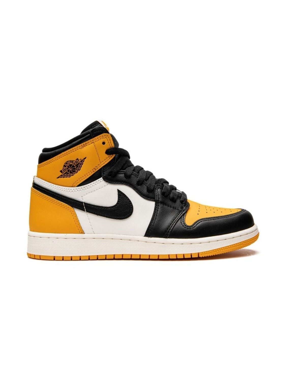 Черный/белый, желтый, телячья кожа, логотип Nike Swoosh, логотип Air Jordan Wings, перфорация, вставки, закругленный носок, шнуровка спереди, высота по щиколотку, резиновая подошва и подошва с технологией Air. Эта модель представлена на маркетплейсе, где можно найти самые редкие модели кроссовок, о которых мечтают коллекционеры и любители streetwear по всему миру.