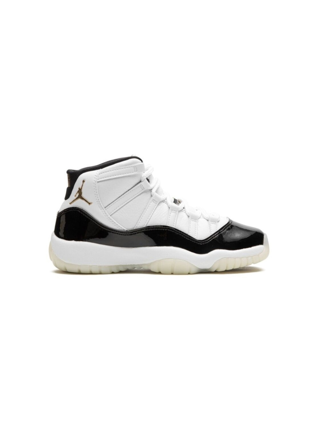 Белый/черный, кожа, логотип Jumpman, лакированная отделка, закругленный носок, шнуровка спереди, стелька с логотипом и резиновая подошва. Эта модель представлена на маркетплейсе, где можно найти самые редкие модели кроссовок, о которых мечтают коллекционеры и любители streetwear по всему миру.
