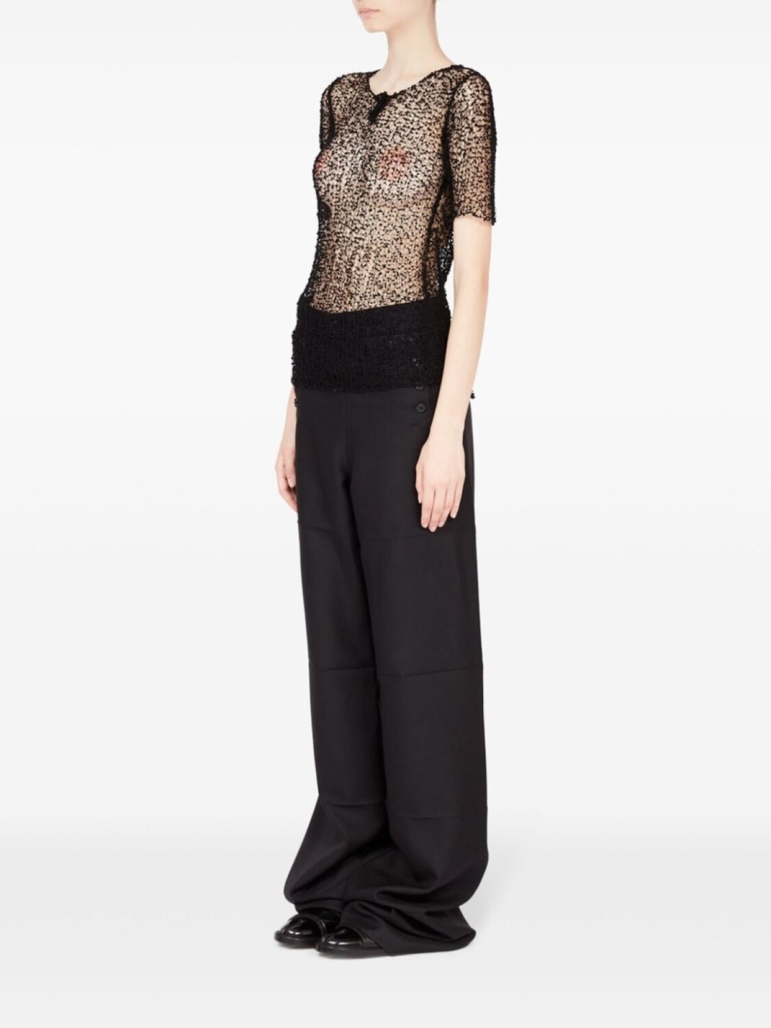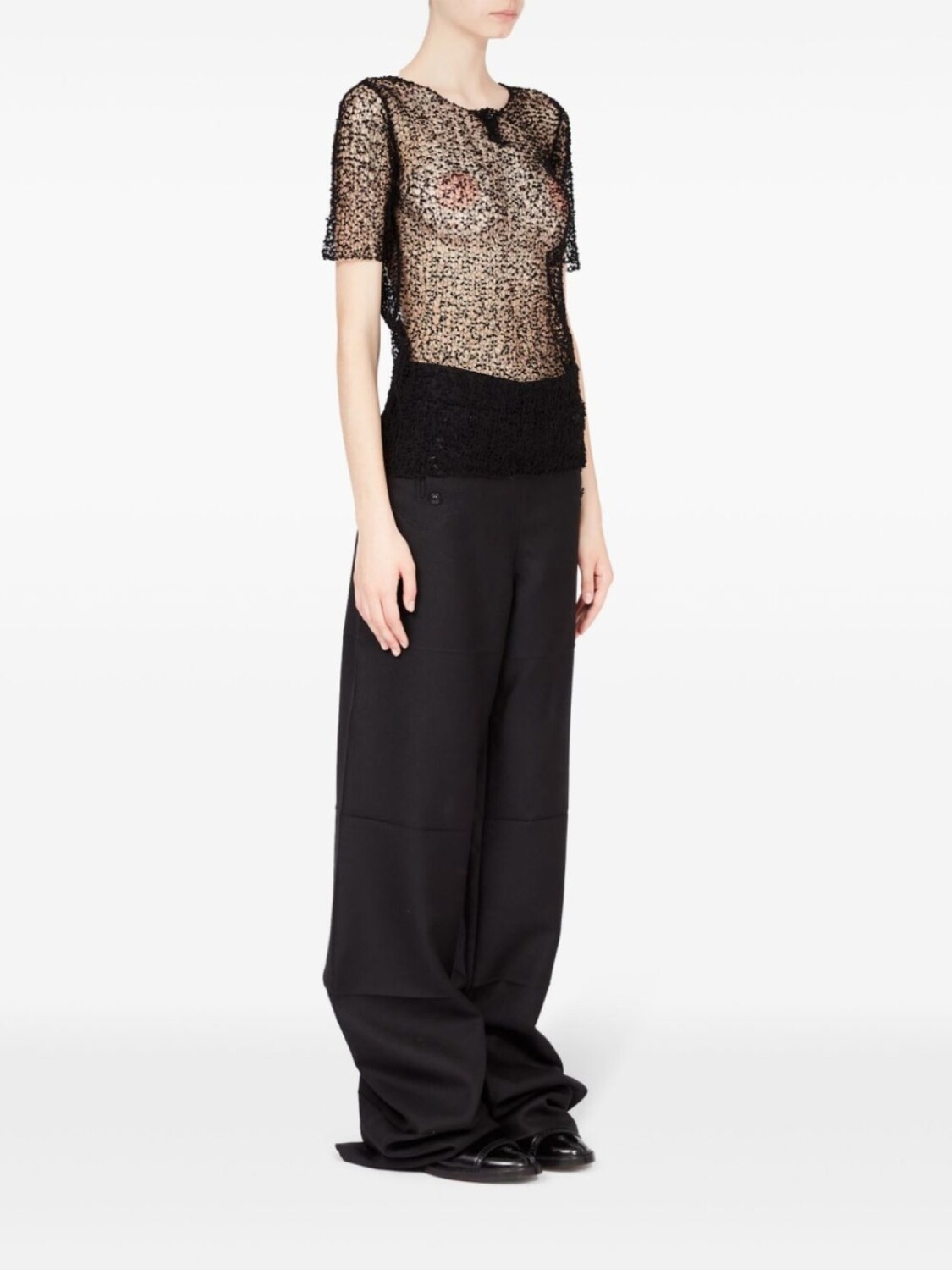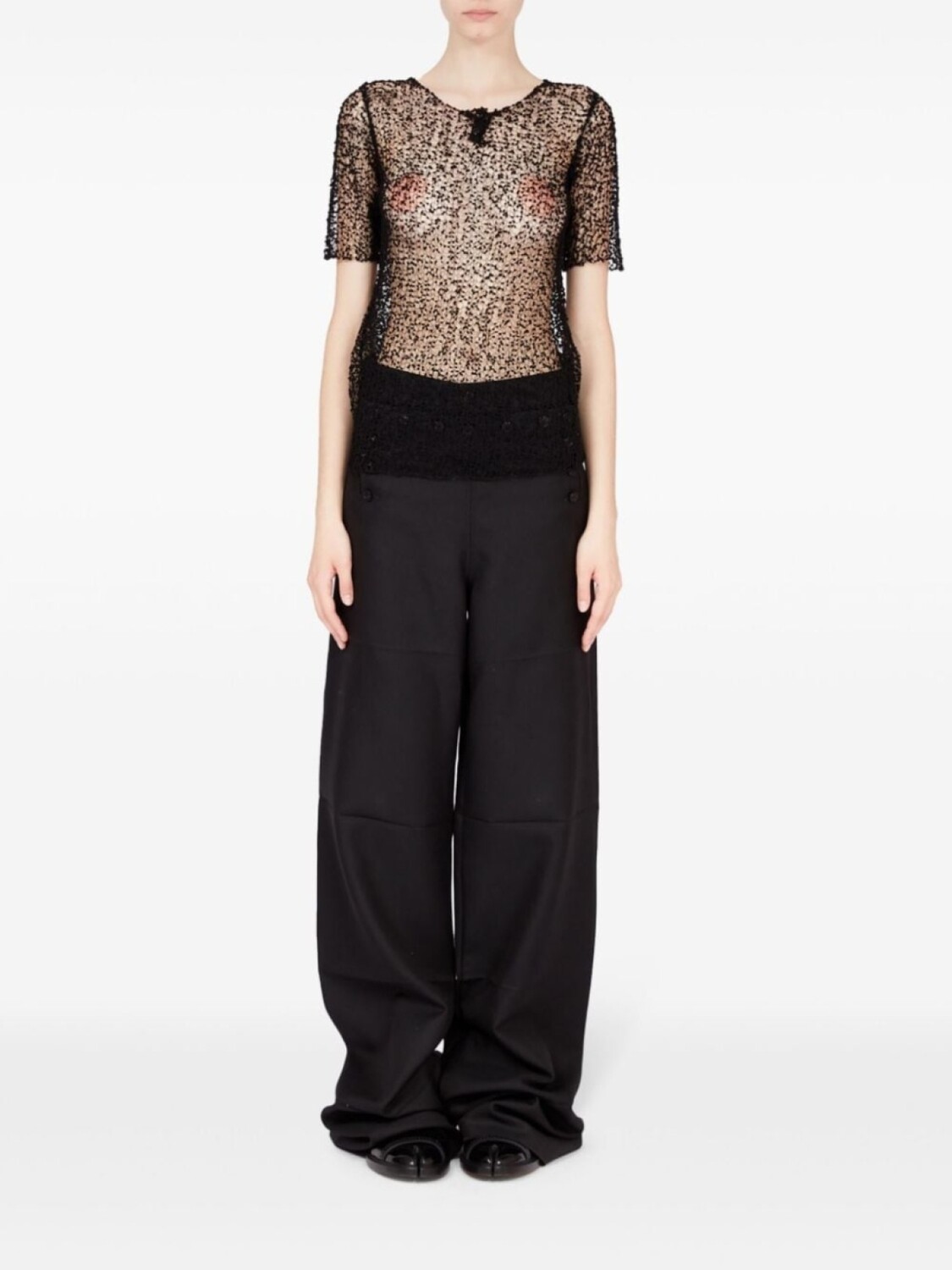 Полупрозрачный топ с вышивкой Maison Margiela, черный 40 744₽