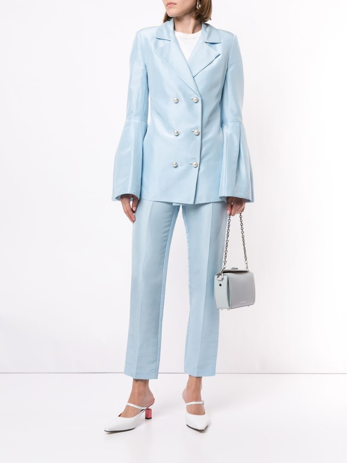 Блейзер Wing с расклешенными рукавами от McGraw (МакГроу). Зазубренные лацканы, двубортный фасон, длинные широкие рукава и разрез на кайме сзади.