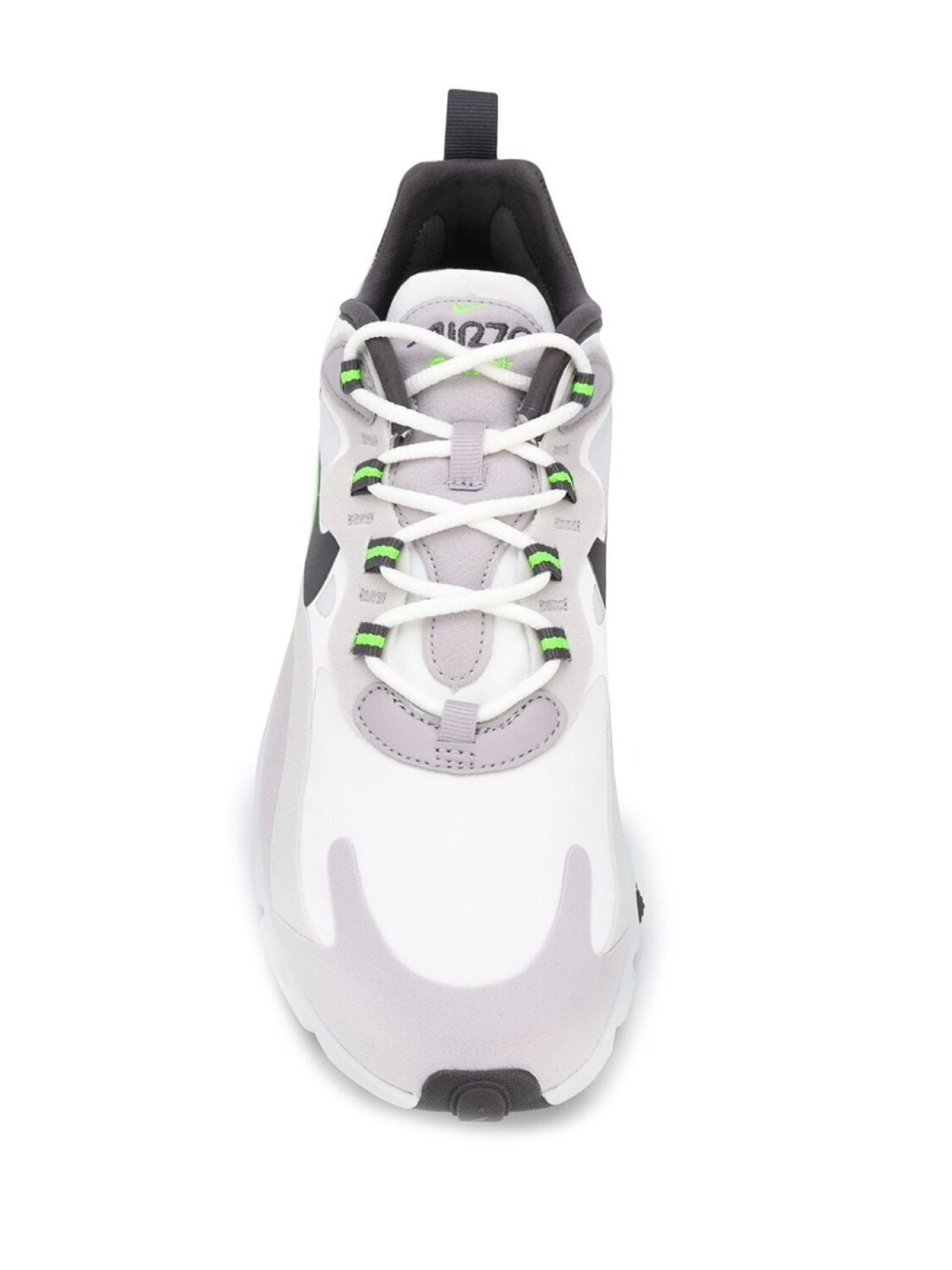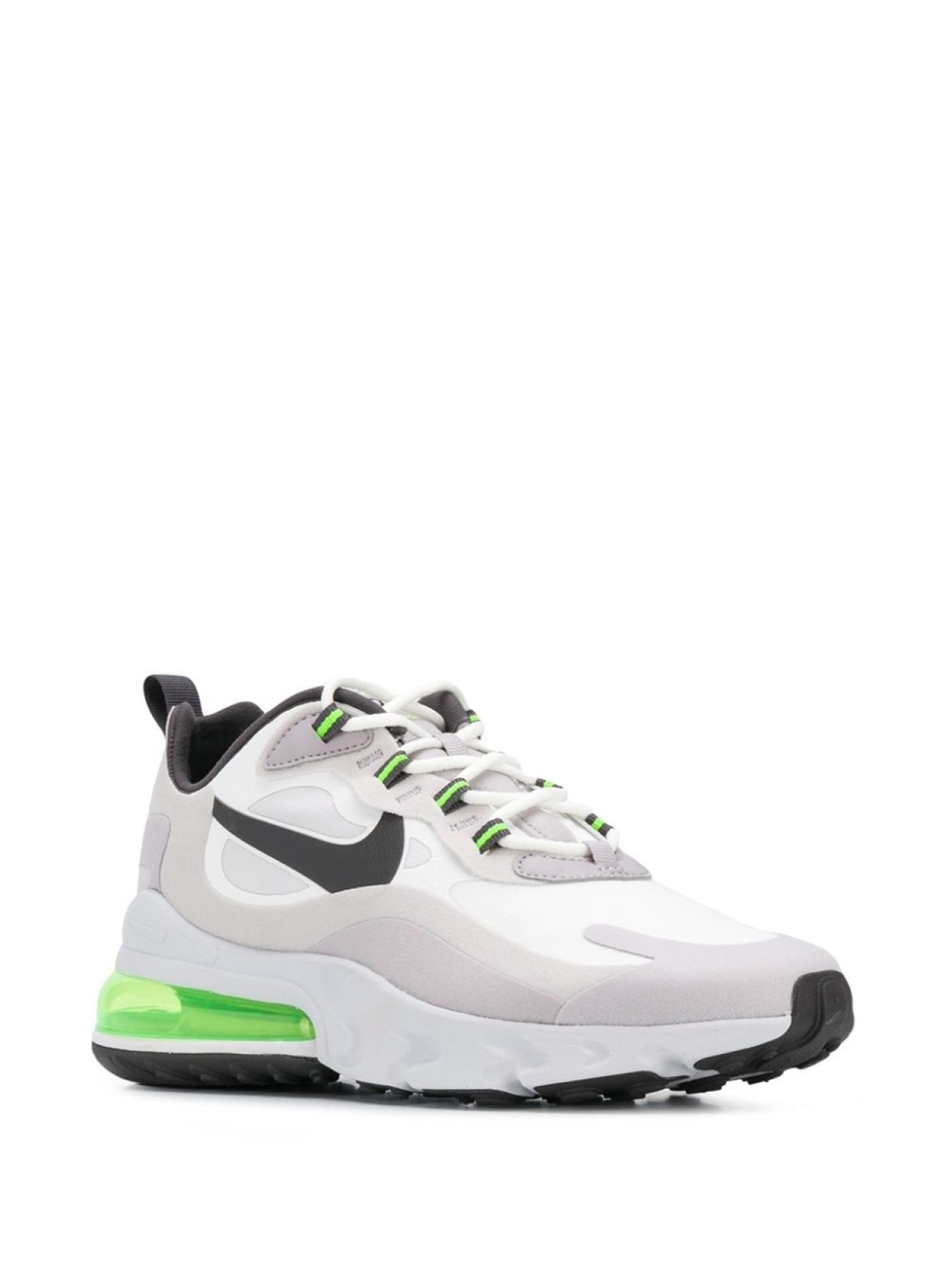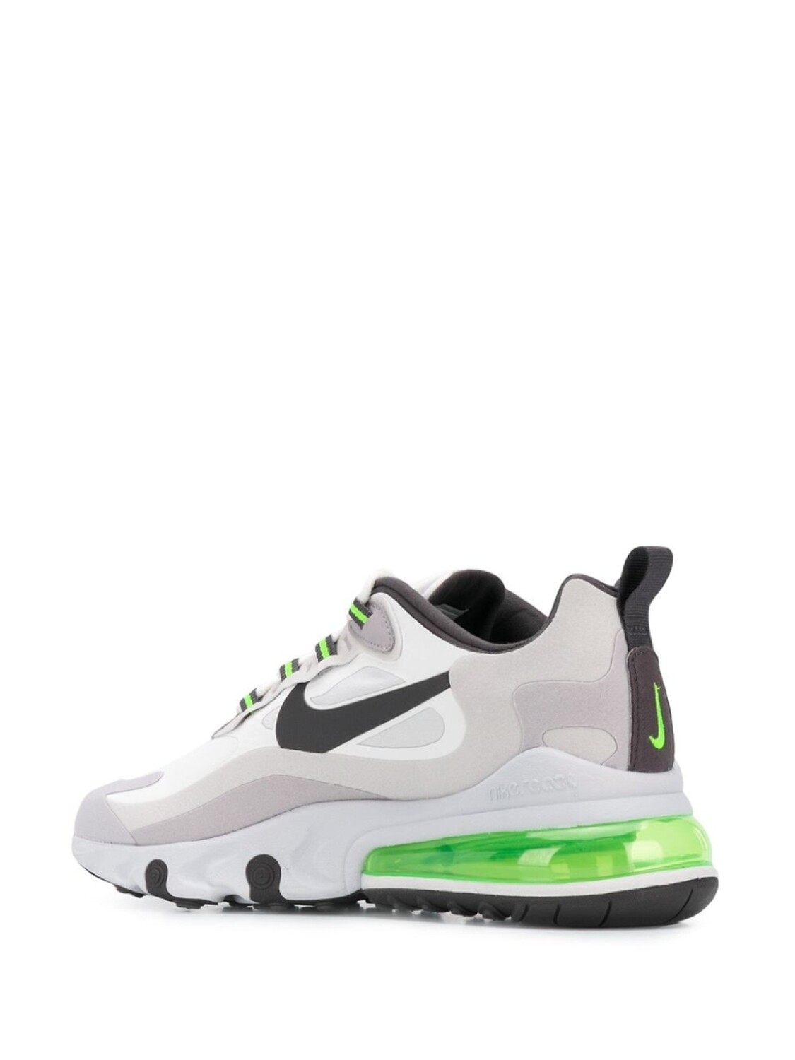 Кроссовки Air Max 270 React от Nike. Фирменная галочка Nike, контрастные панели, закругленный носок, шнуровка спереди, петля для подтягивания сзади и резиновая подошва.