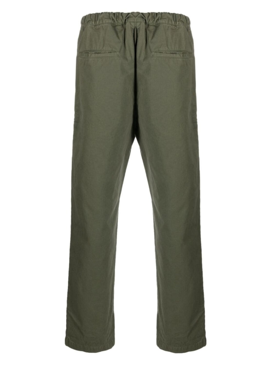 Темно-зеленый, хлопок, эластичный пояс, потайная застежка на кнопках спереди, прямой крой, два накладных кармана спереди и два накладных кармана сзади.