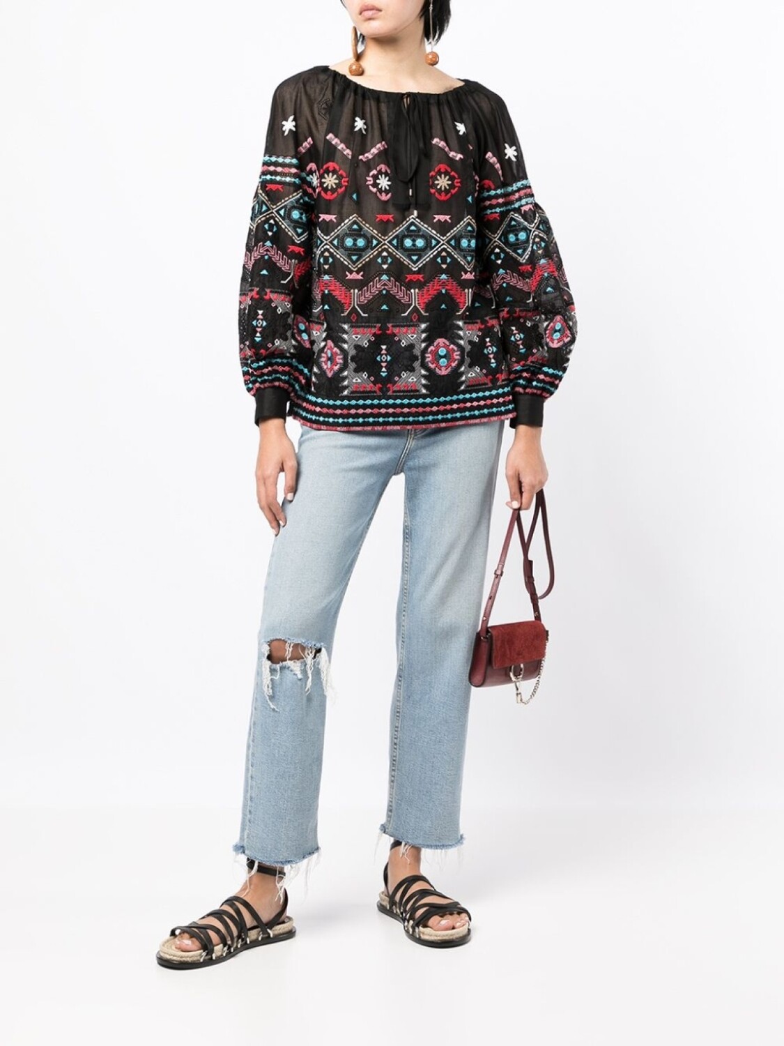 Блузка с длинными рукавами и вышивкой Ermanno Scervino, черный