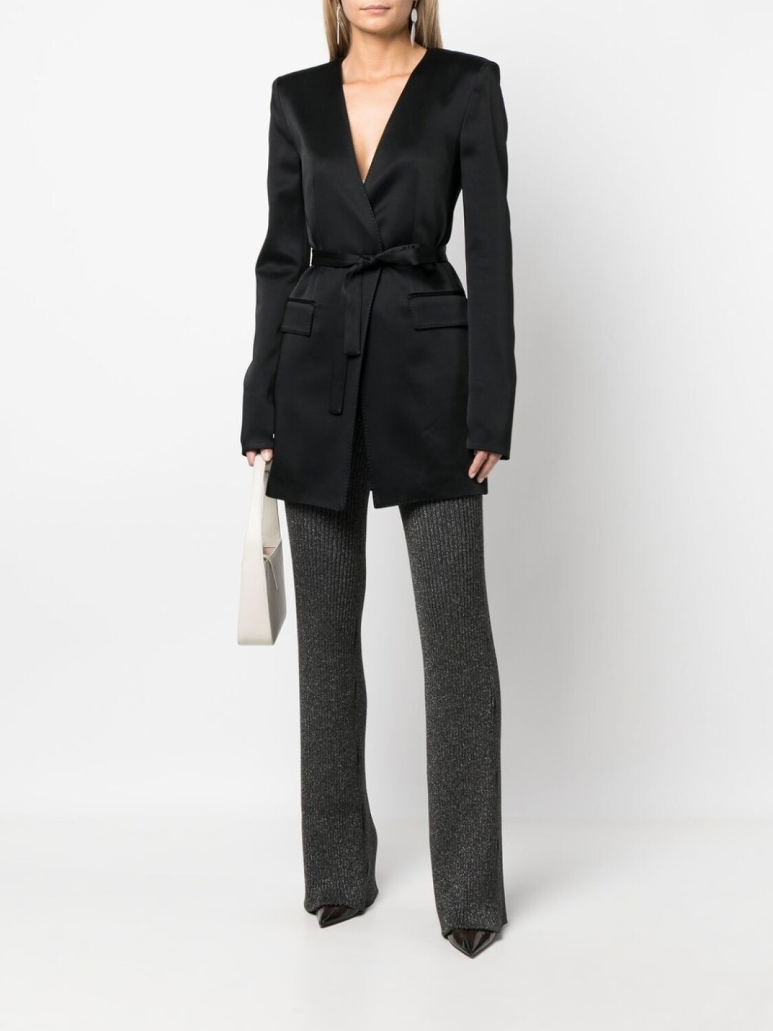 Угольно-серый, смесовая необработанная шерсть, эластичный материал, трикотаж в рубчик, эластичный пояс и прямой крой.