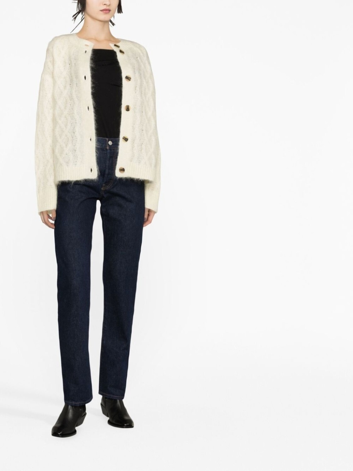 Хлопок, застежка на пуговицах спереди, петли для ремня, пять карманов и прямой крой.