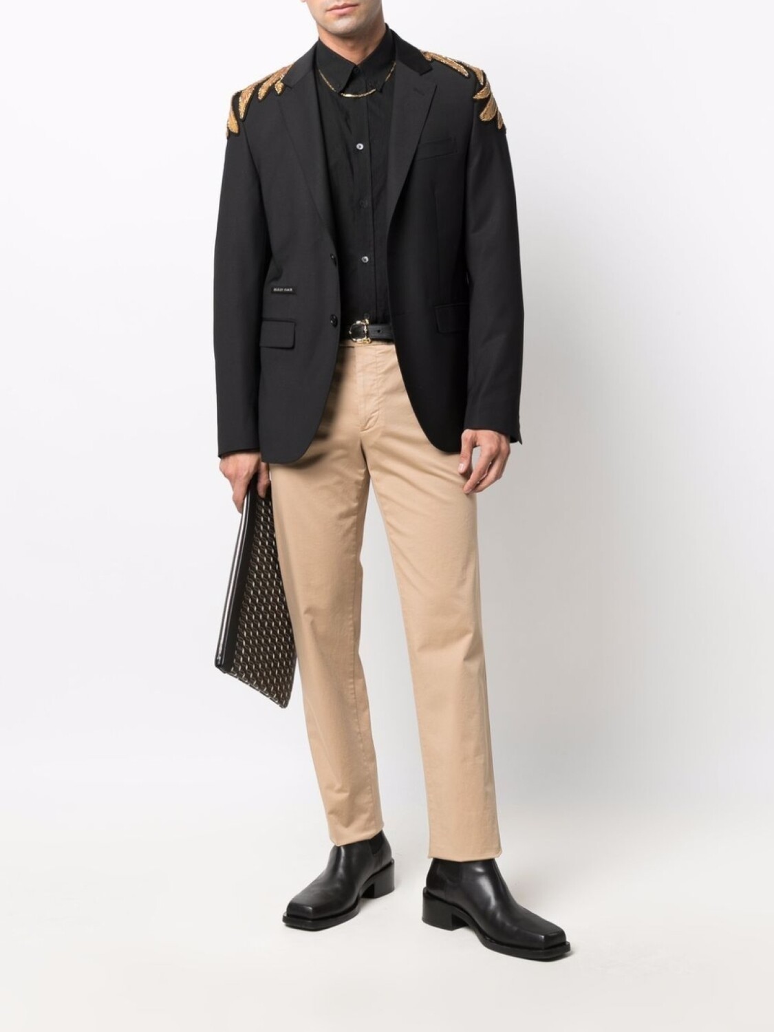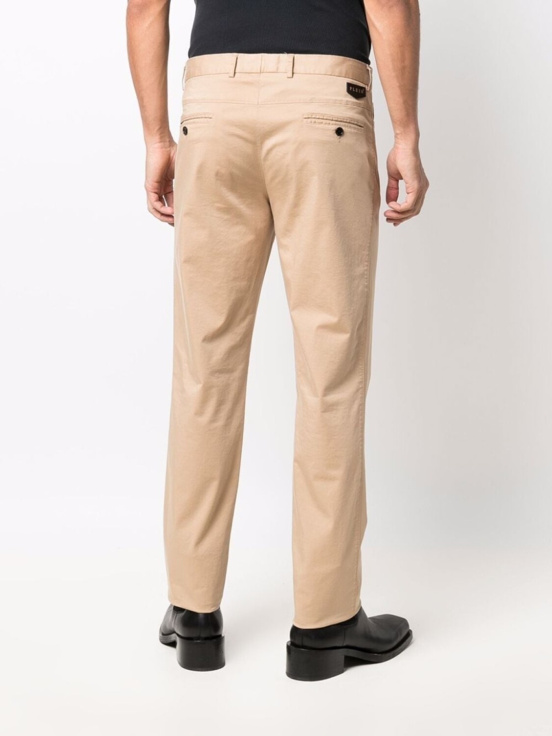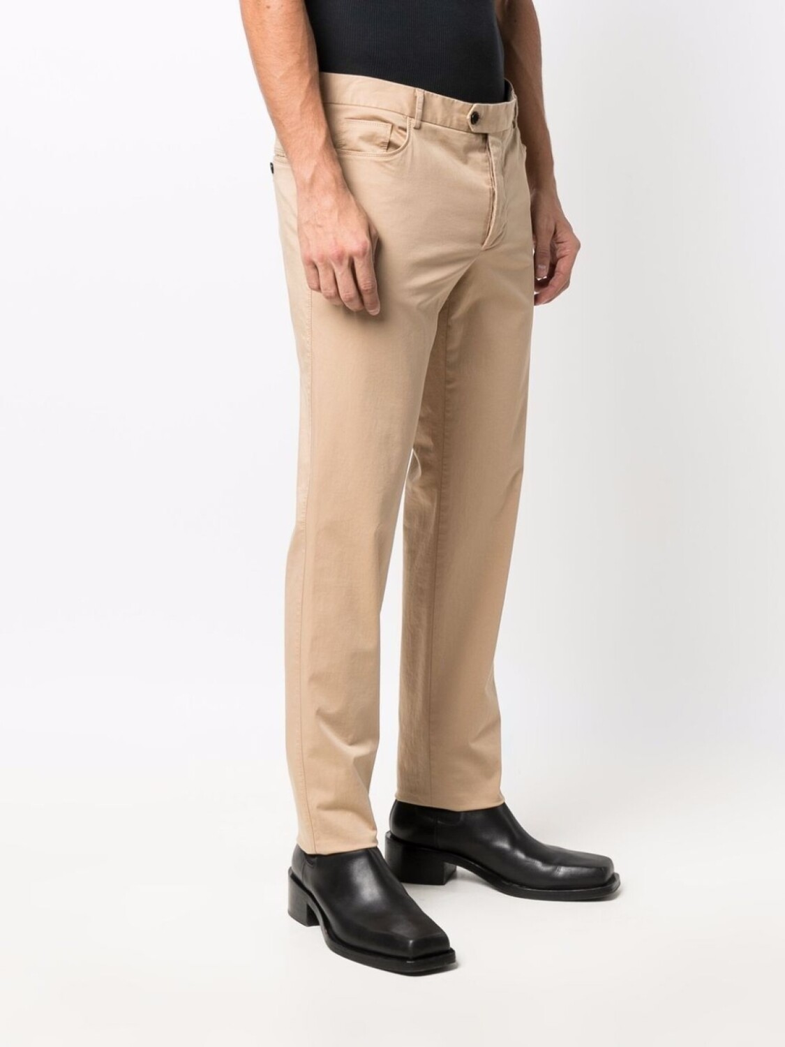 Нашивка с логотипом сзади, петли для ремня, потайная застежка спереди, классическая пятикарманная модель и узкий крой.