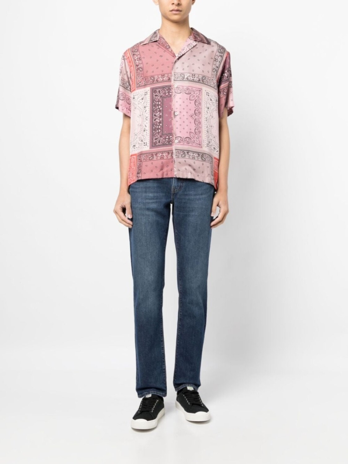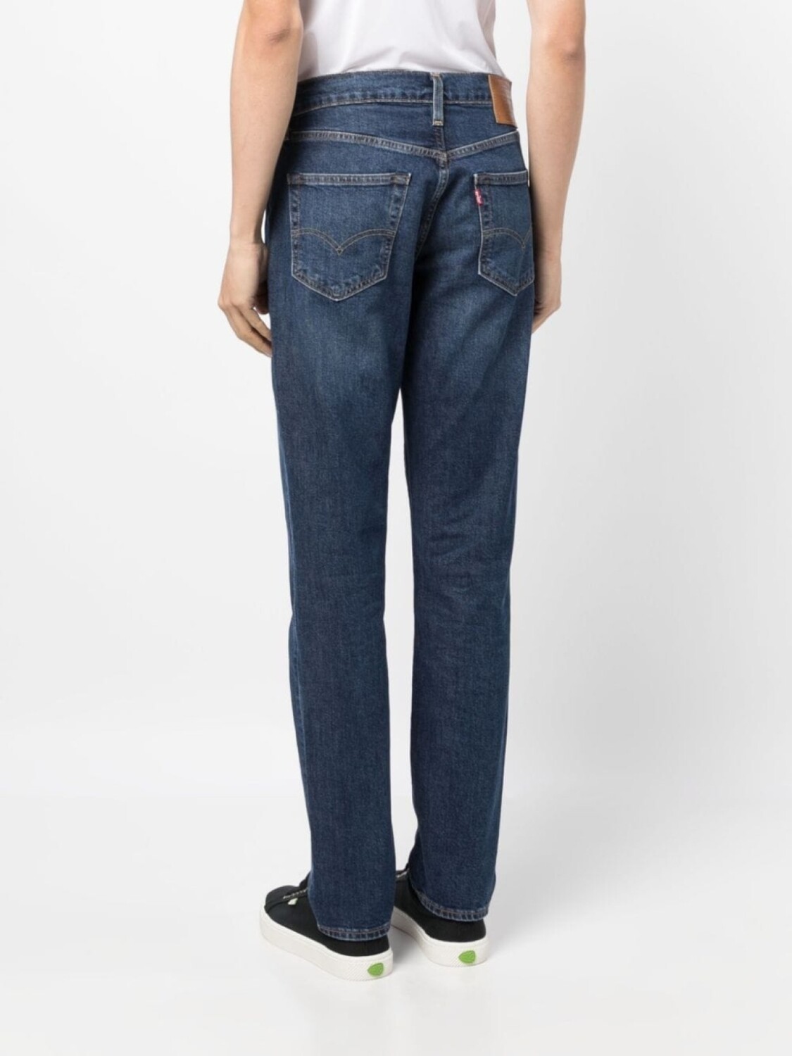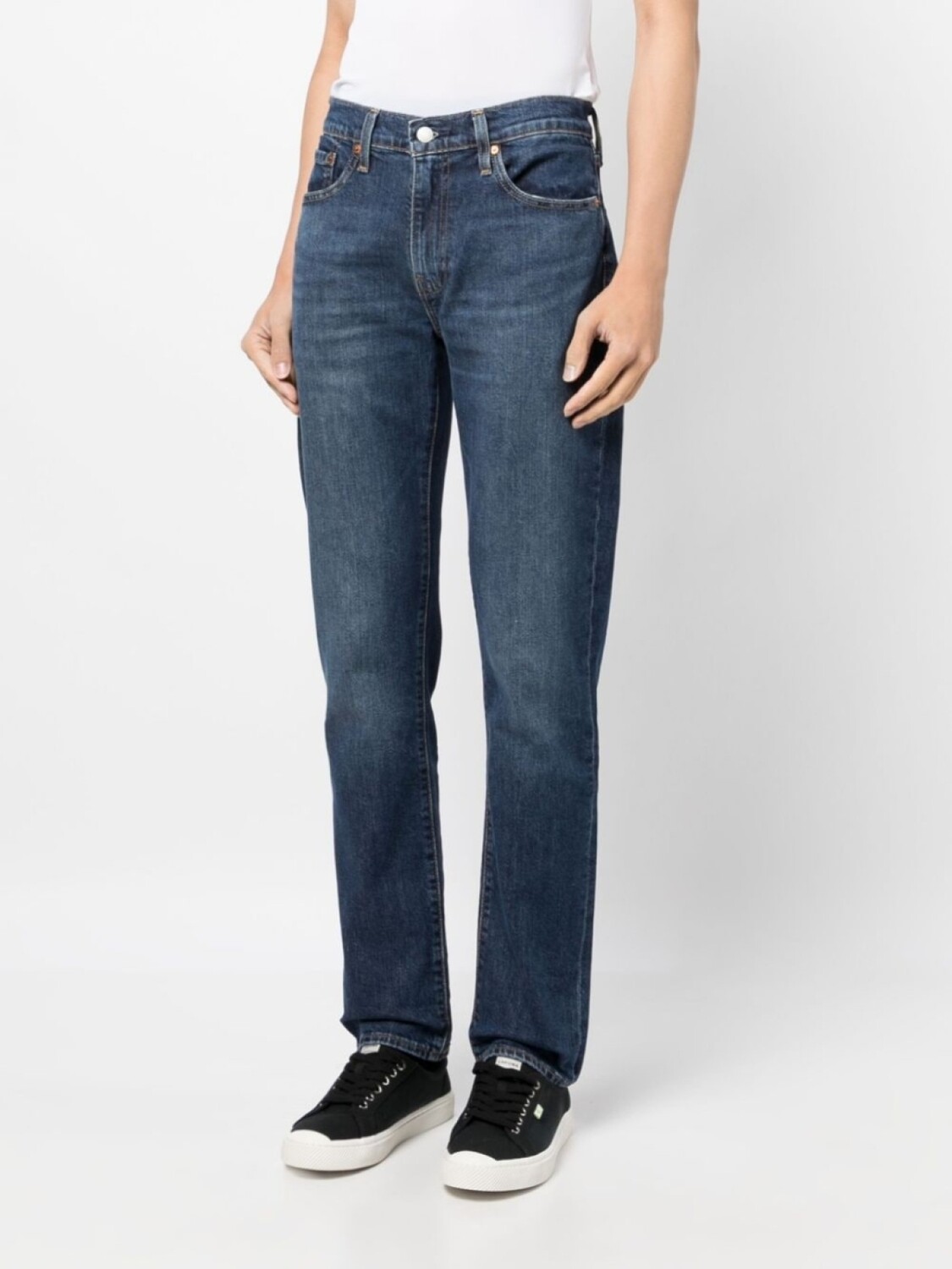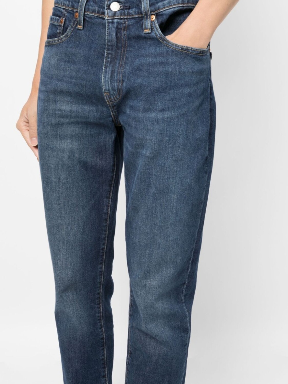 Петли для ремня, потайная застежка на молнии и пуговицах, пять карманов и узкий крой.