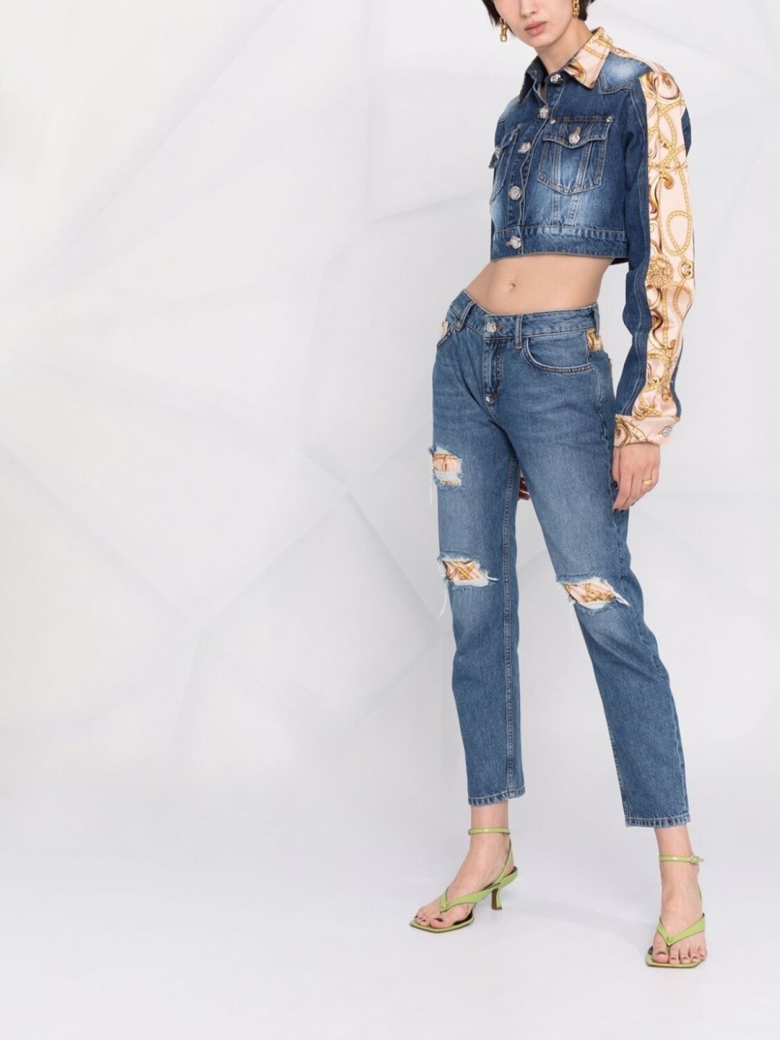 Укороченная джинсовая куртка с принтом Philipp Plein, синий 55 293₽
