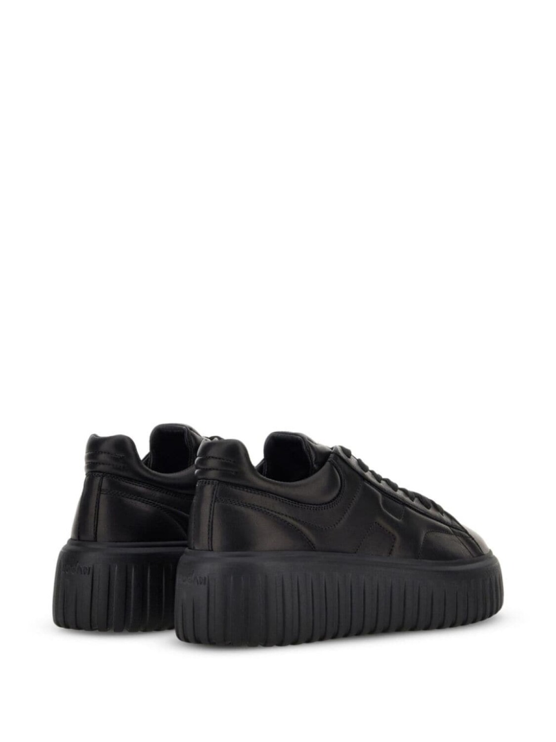 Черный, кожа, вставки, знаковый логотип H, язычок с логотипом, закругленный носок, шнуровка спереди, контрастный задник, стелька с логотипом и подошва на платформе.