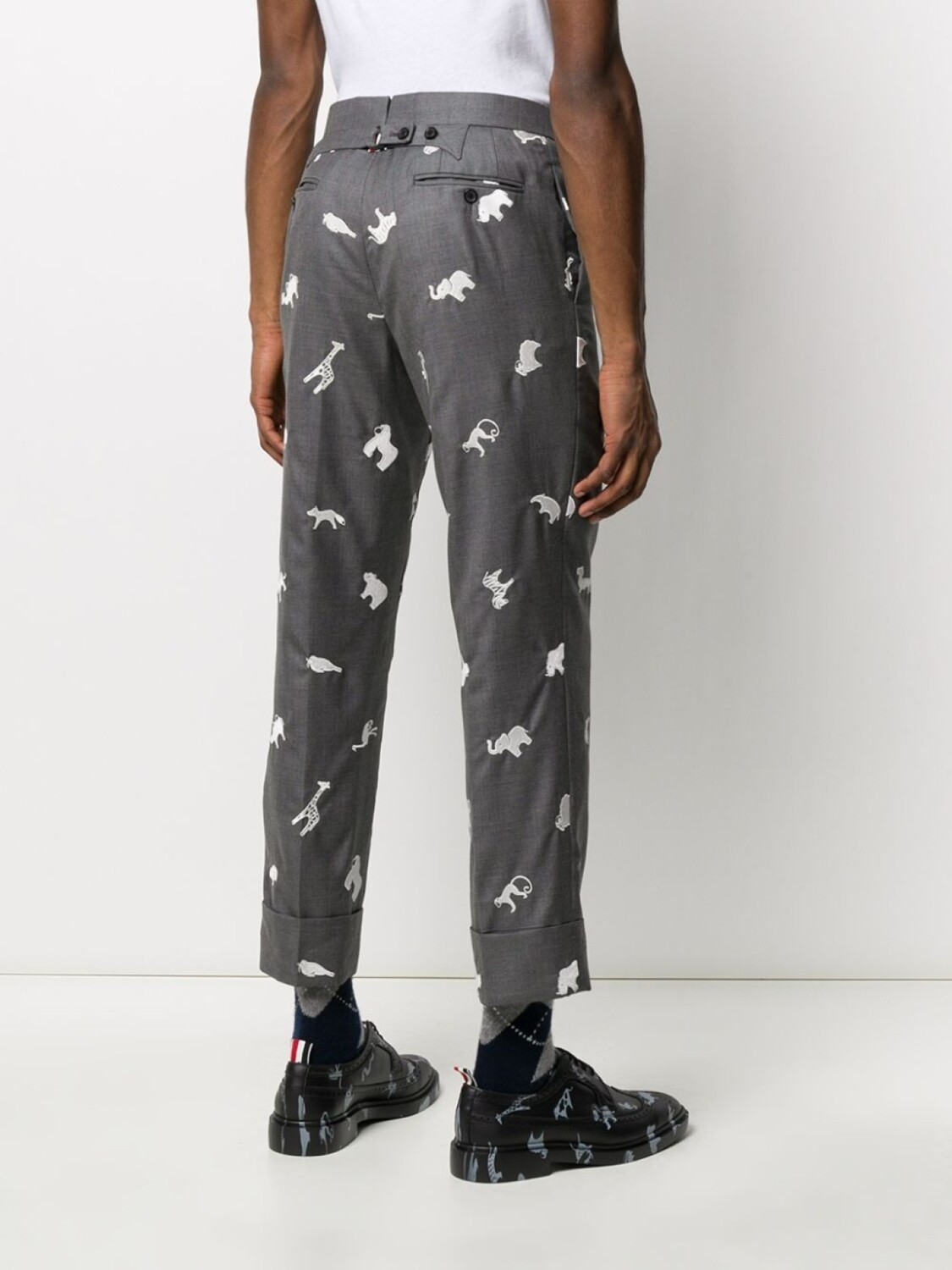 Укороченные брюки с вышивкой Thom Browne, серый 185 788₽