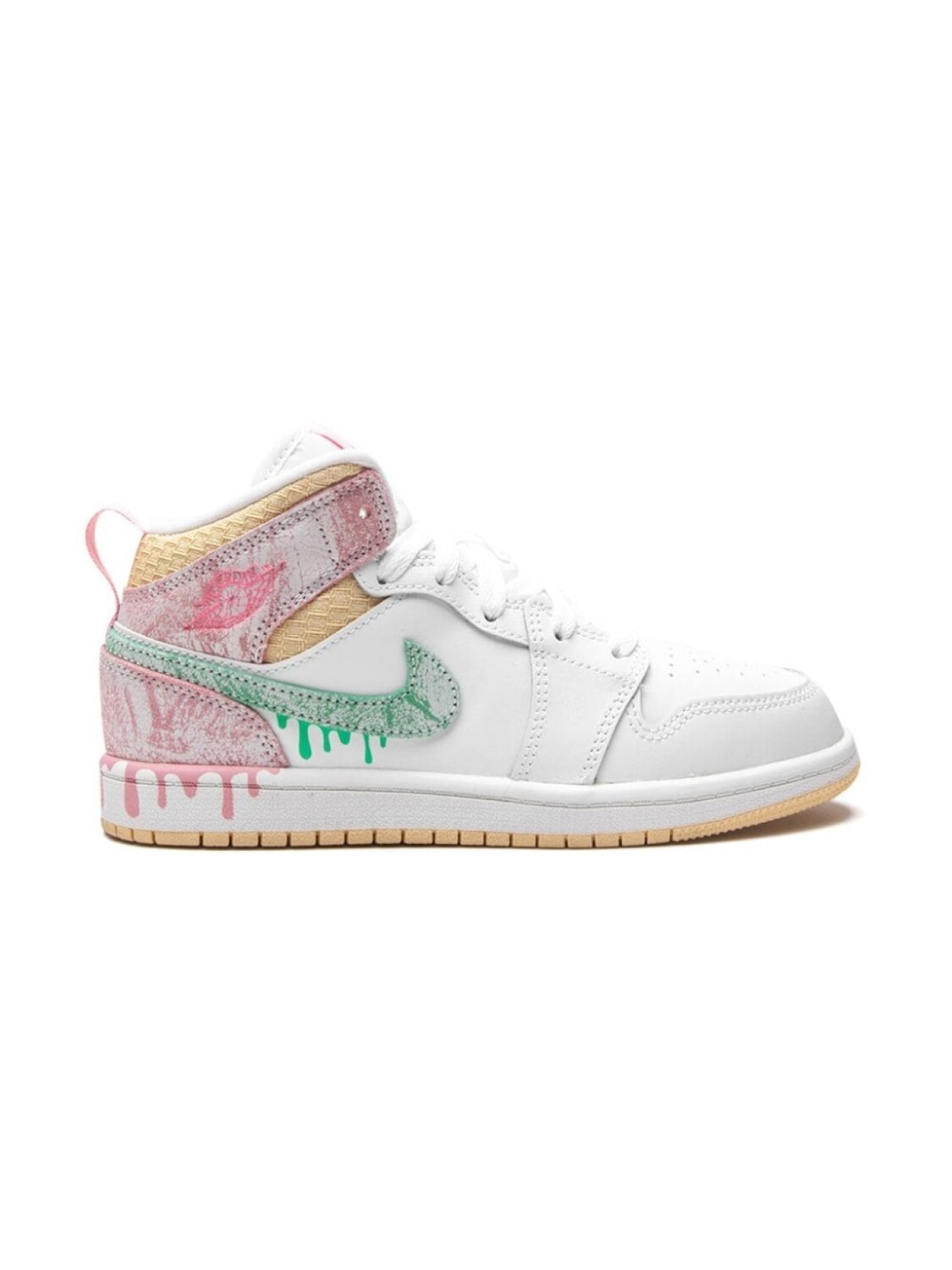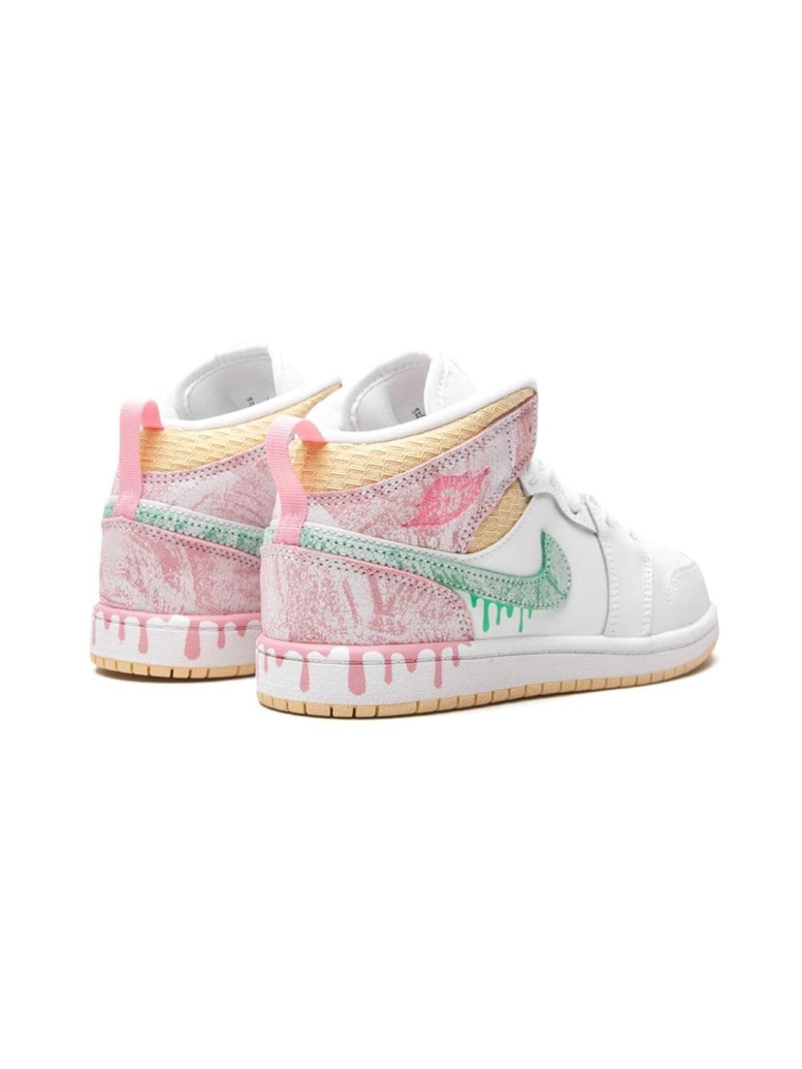 Логотип Air Jordan Wings, логотип Nike Swoosh, эффект разбрызганной краски, контрастные вставки, перфорация, закругленный носок, шнуровка спереди, нашивка с логотипом на язычке, длина по щиколотку, петля для подтягивания сзади и резиновая подошва. Цвет: белый. Эта модель представлена на маркетплейсе, где можно найти самые редкие модели кроссовок, о которых мечтают коллекционеры и любители streetwear по всему миру.