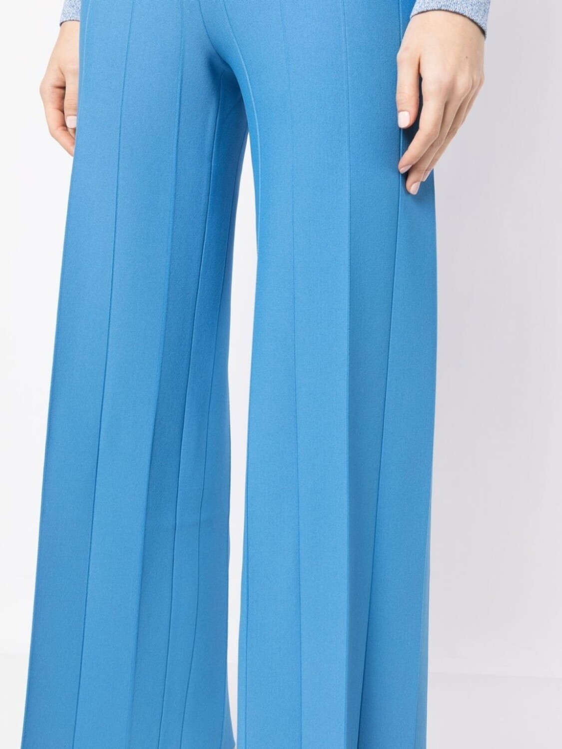 Лазурный, классический крой, вставки, завышенная талия, эластичный пояс, широкий крой и укороченная длина.
