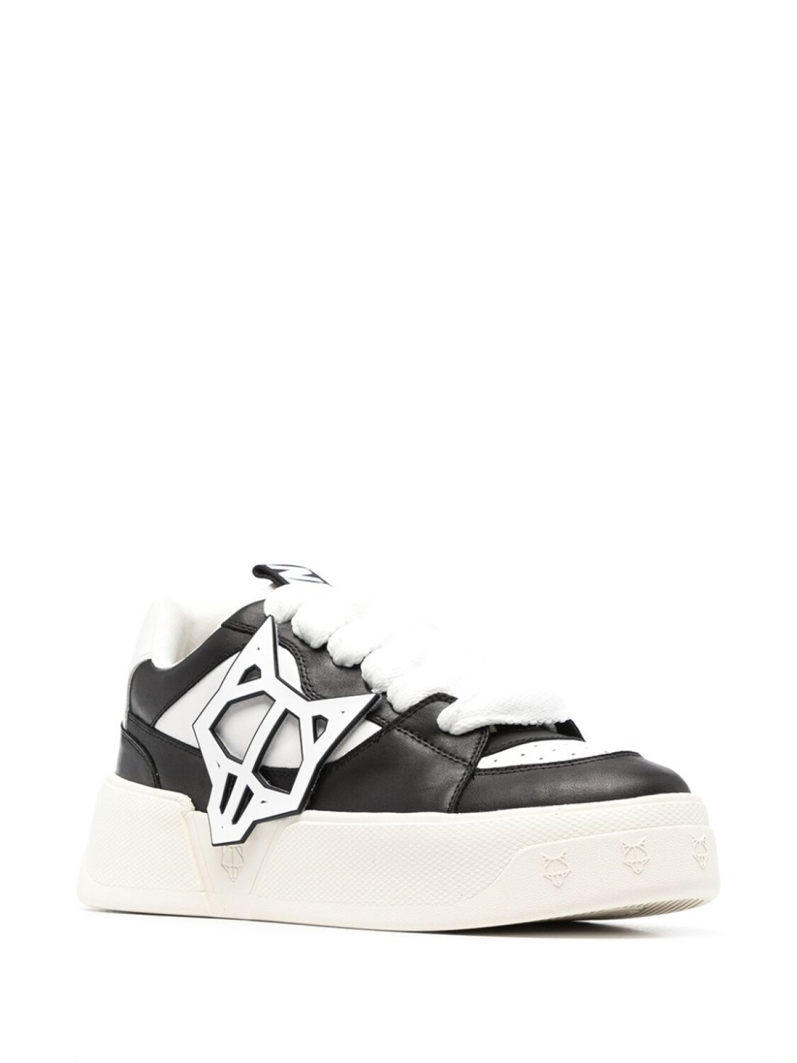 Логотип-аппликация, принт с логотипом сзади, контрастные вставки, закругленный носок, язычок с логотипом, стелька с логотипом и резиновая подошва.