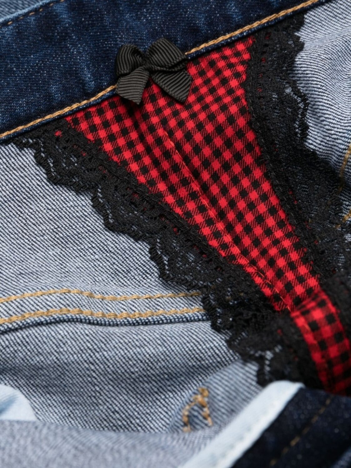 Индиго, эластичный хлопок, обработанный деним, декоративные складки, нашивка с логотипом сзади, петли для ремня, застежка на пуговицах спереди, облегающий крой, укороченная длина и пять карманов.