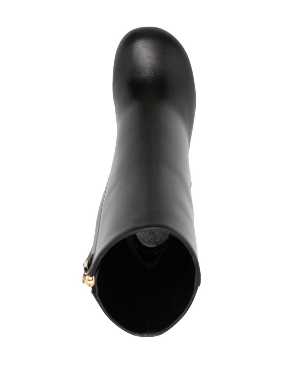 Черный, телячья кожа, закругленный носок и скульптурный каблук средней высоты.