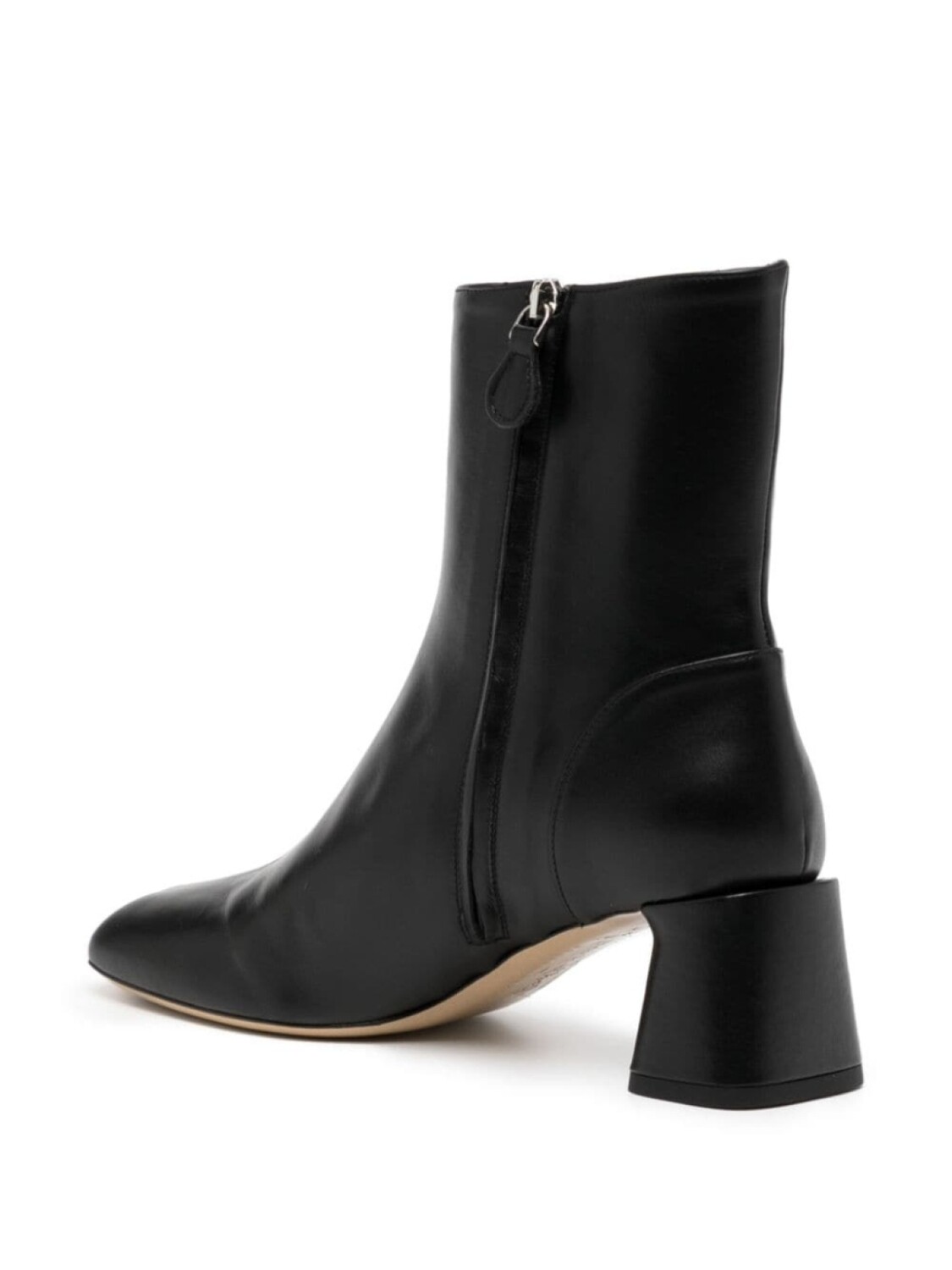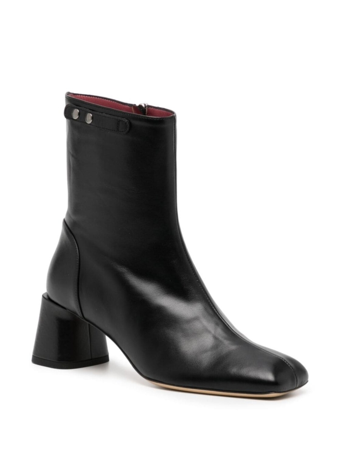 Черный, телячья кожа, квадратный носок, декоративные пуговицы, кожаная стелька с логотипом, застежка на молнии сбоку, высота по щиколотку, блочный каблук средней высоты