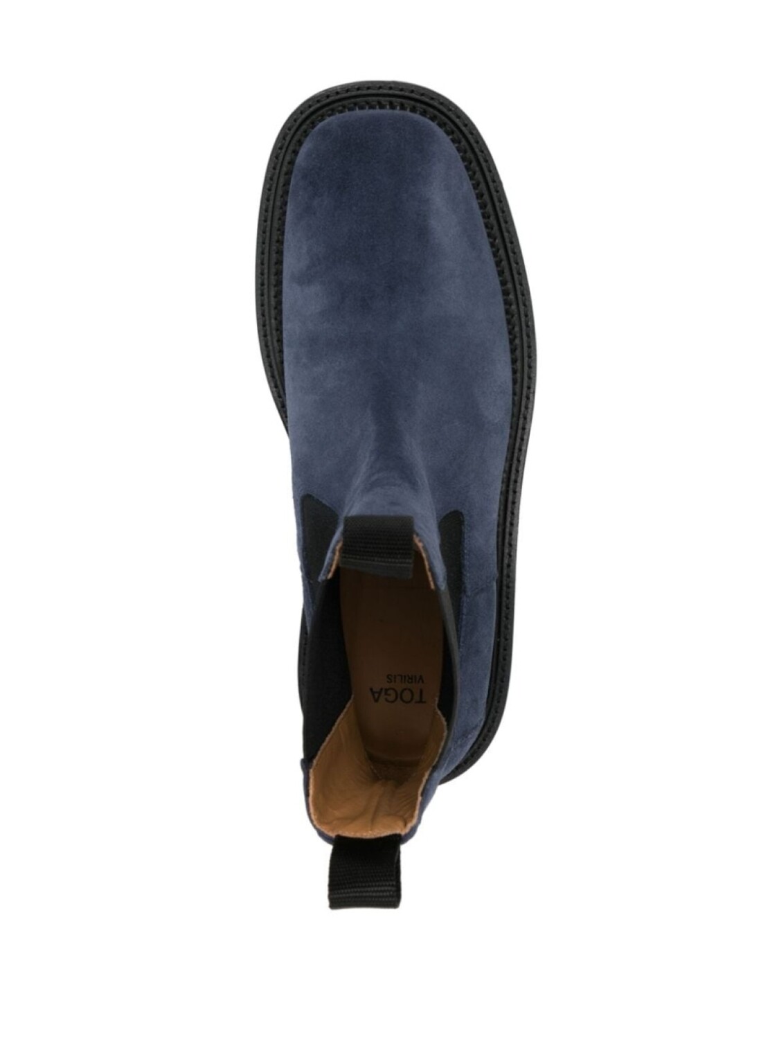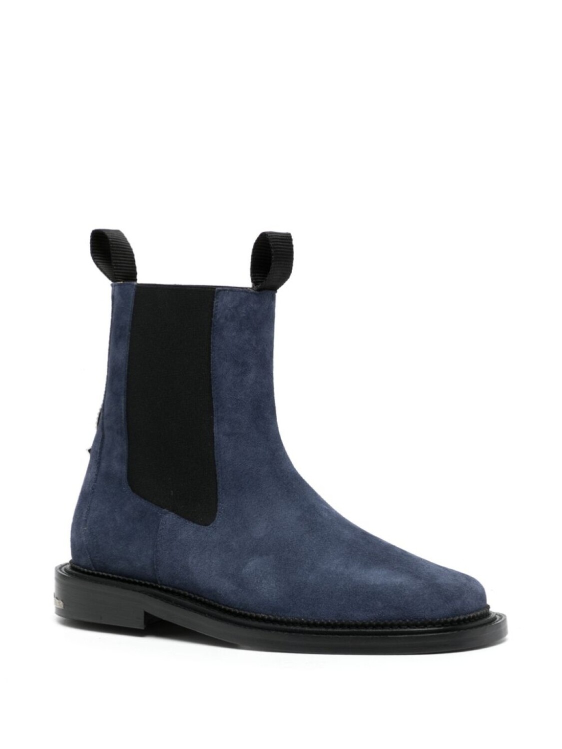 Темно-синий, замша из телячьей кожи, матовый эффект, серебристые заклепки, двойная петля для подтягивания, закругленный носок, эластичные боковые вставки, модель без застежки, кожаная стелька с логотипом и плоская кожаная подошва.