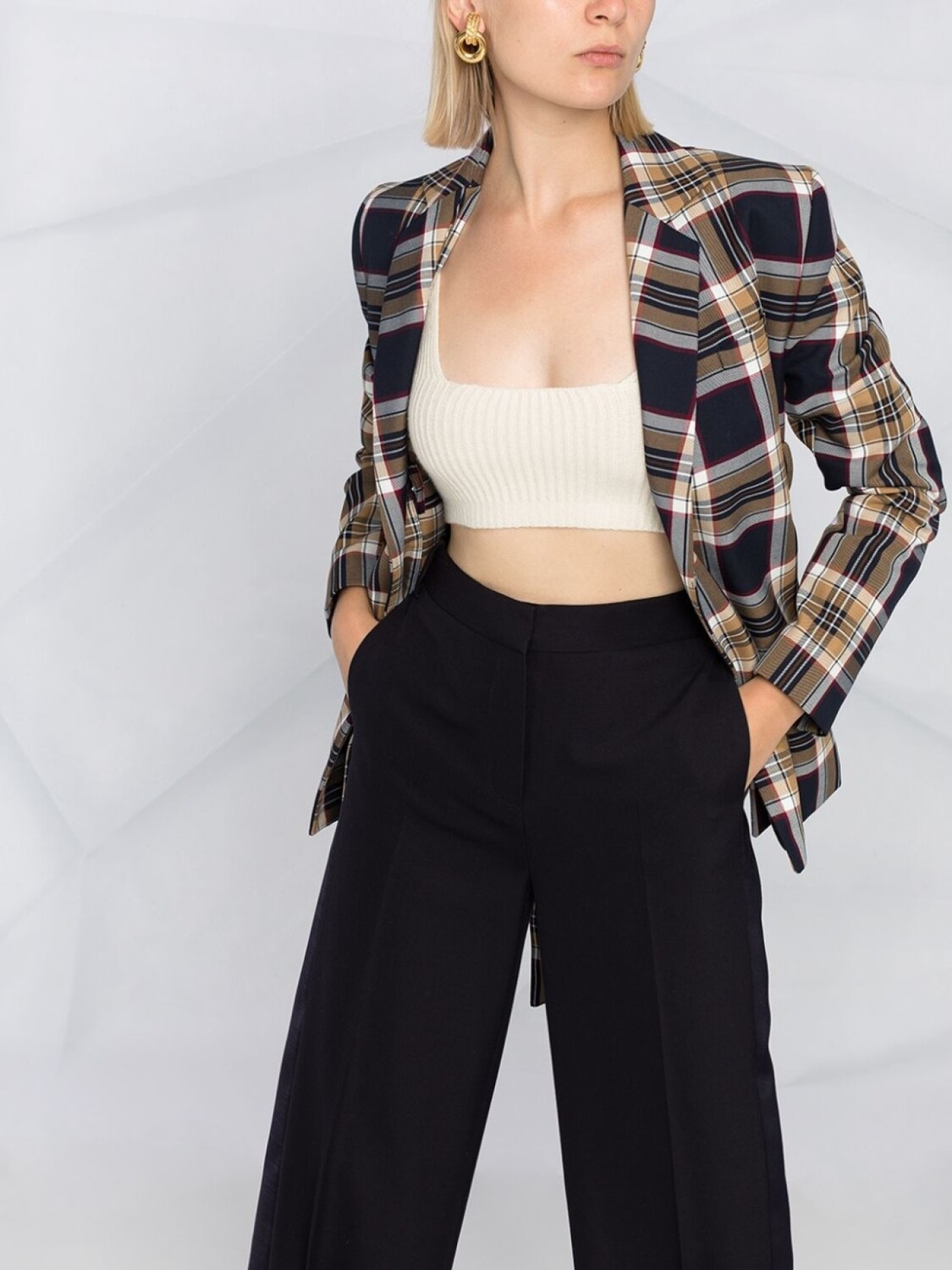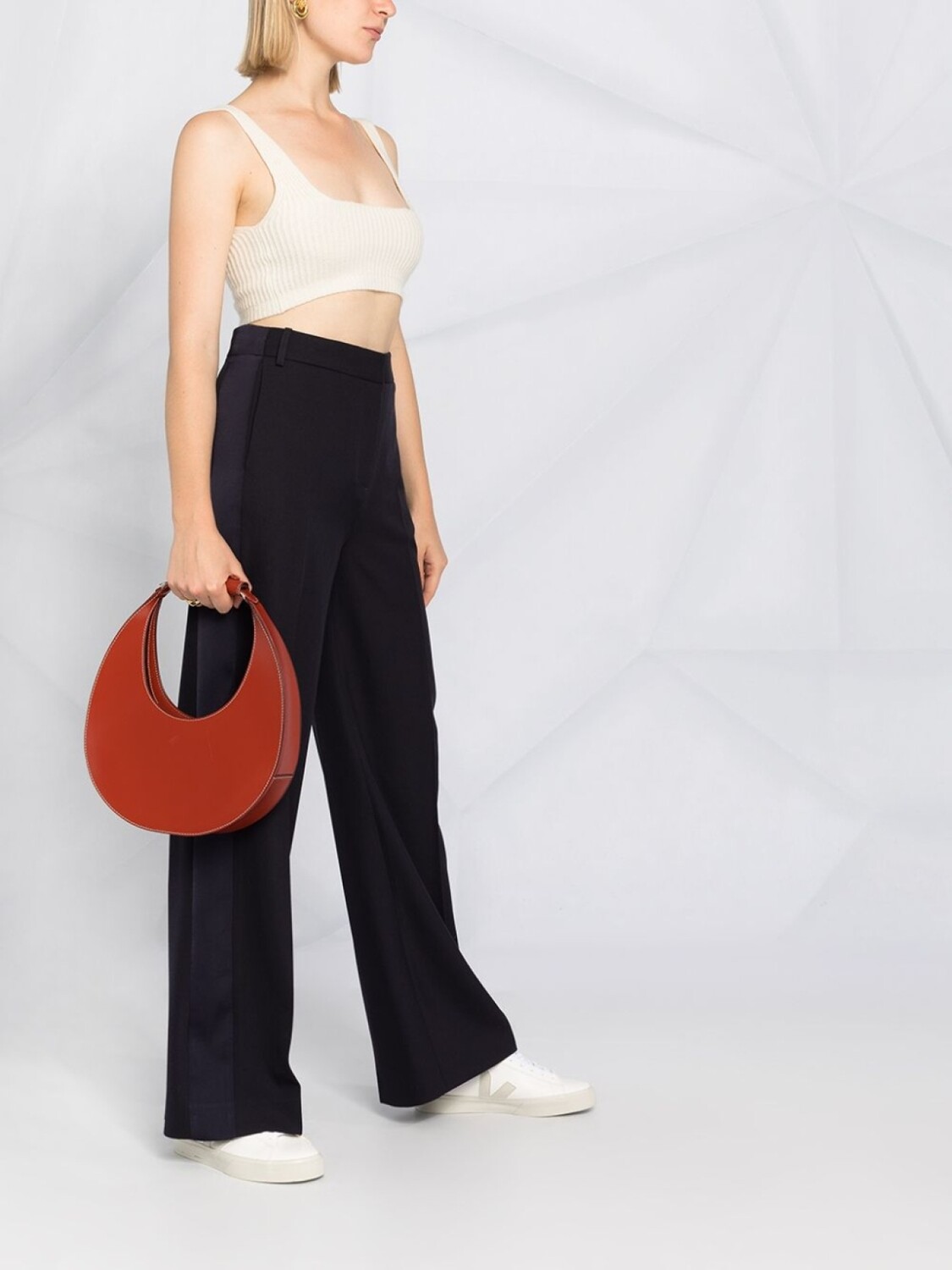 Трикотаж в рубчик, круглый вырез, без рукавов и укороченная длина.