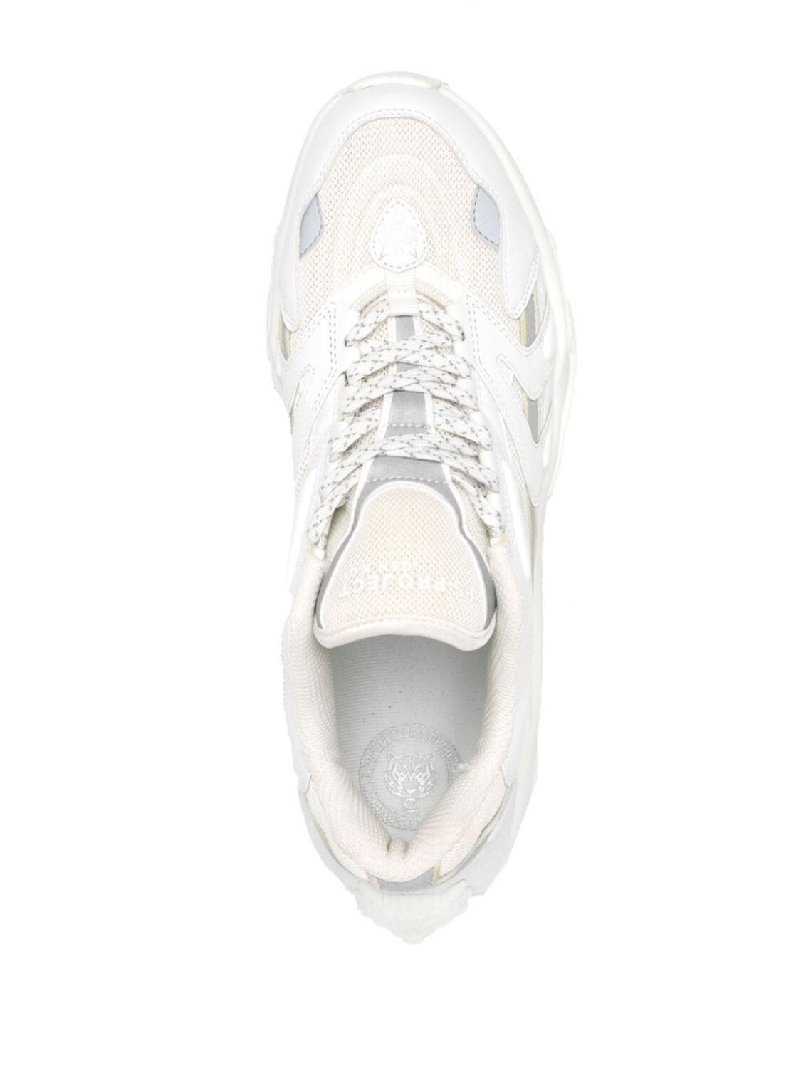 Белый, вставки, сетчатые вставки, шнуровка спереди, закругленный носок и плоская резиновая подошва. Это унисекс-модель. Обратите внимание, что для нее используется мужская размерная сетка.