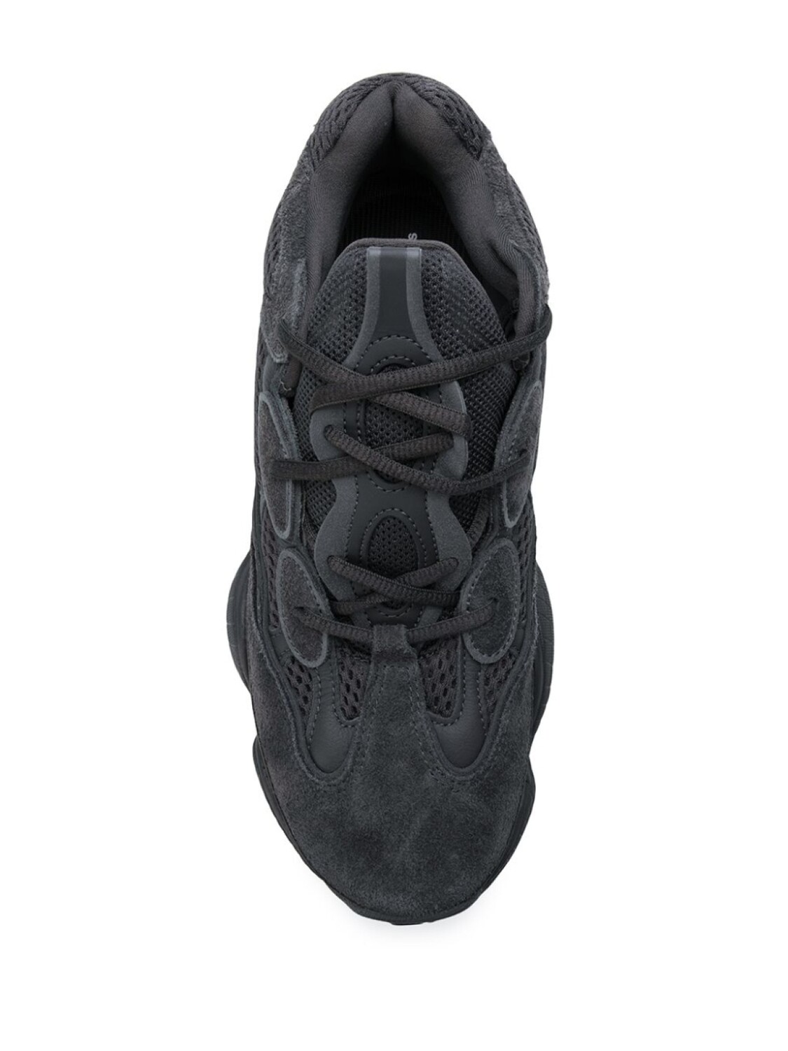 Кроссовки Yeezy 500 Utility Black от Yeezy. Закругленный носок, шнуровка спереди, панели из сетки и ребристая резиновая подошва. Цвет: черный.