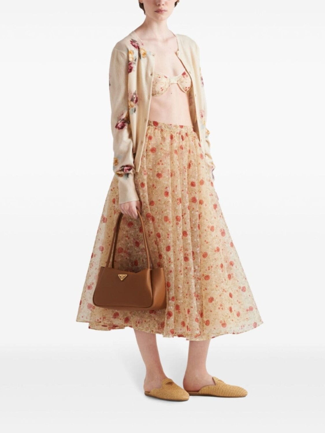Бюстгальтер с кружевом и цветочным принтом Prada, бежевый 102 606₽