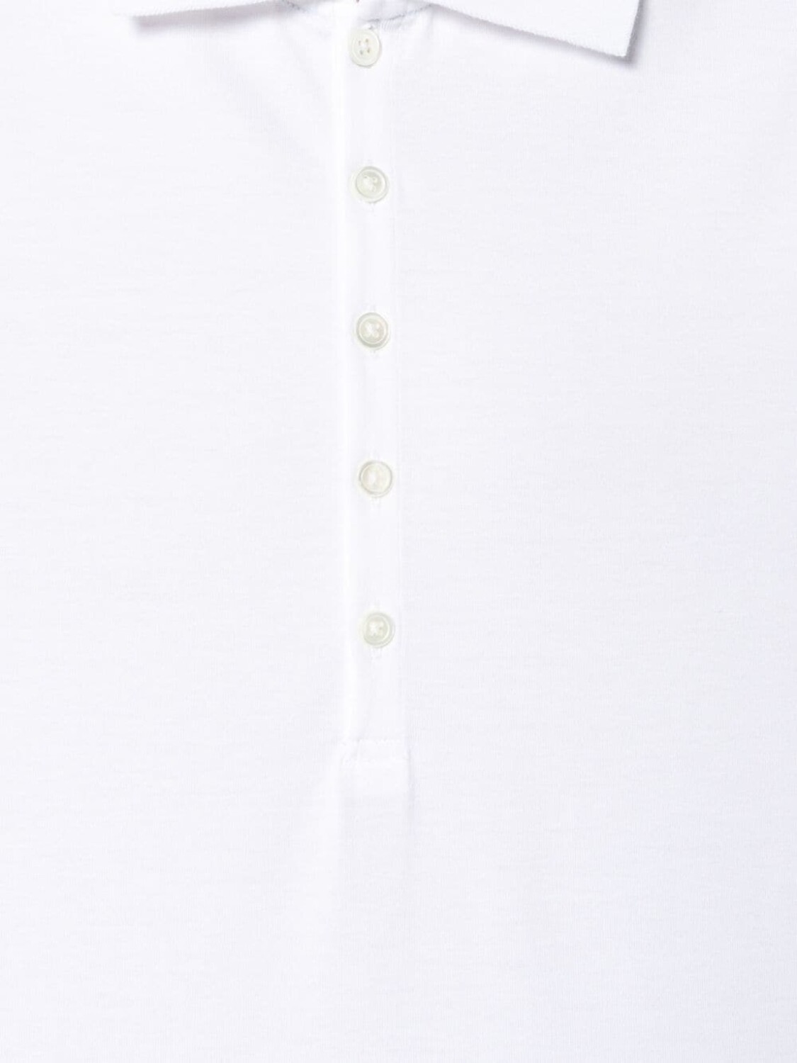 Белый, хлопок, короткие рукава, воротник поло, планка на пуговицах спереди и полоски RWB.