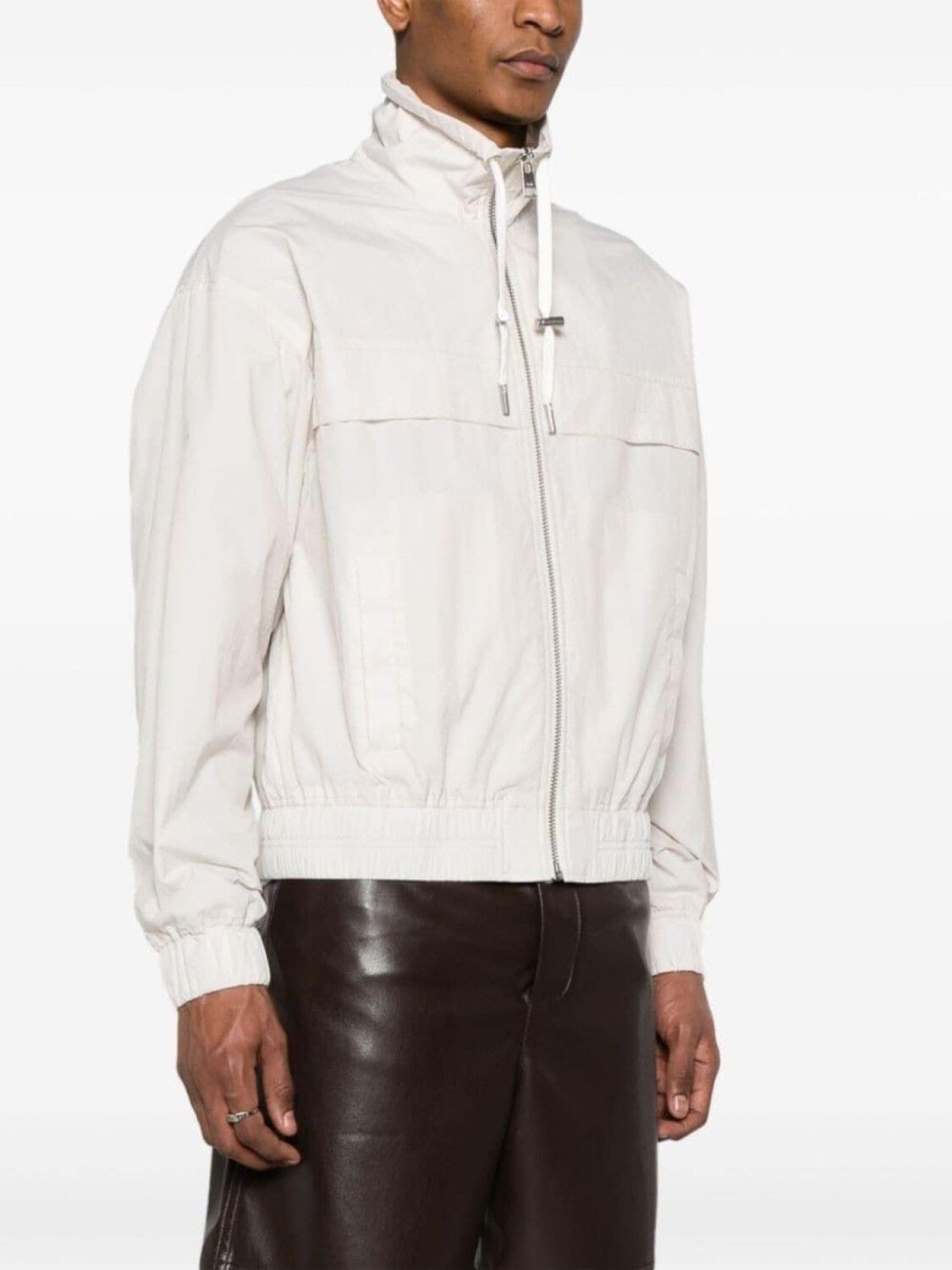 Светло-бежевый, плотный внешний материал, легкий материал, логотип спереди, дизайн со вставками, затягивающийся на шнурок капюшон, застежка на молнии спереди, пуллер с логотипом, приспущенные плечи, длинные рукава, эластичные манжеты, два передних кармана с листочкой, эластичный подол