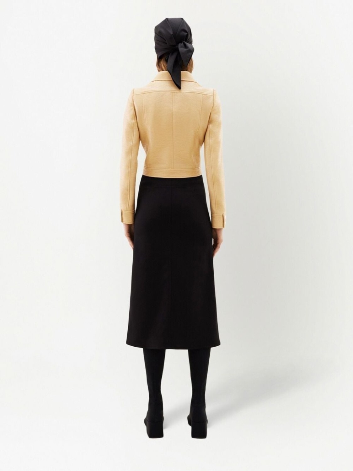 Песочно-бежевый, смесовый хлопок, нашивка с логотипом спереди, отложной воротник, застежка на пуговицах спереди, длинные рукава, манжеты на пуговицах и укороченная длина.